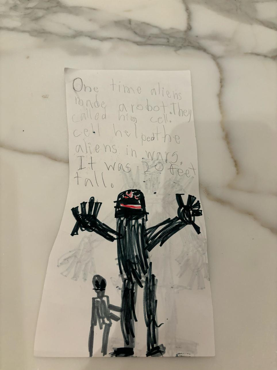 One time, aliens made a robot. They named him Cell. Cell helped the aliens in wars. It was 20 feet tall.