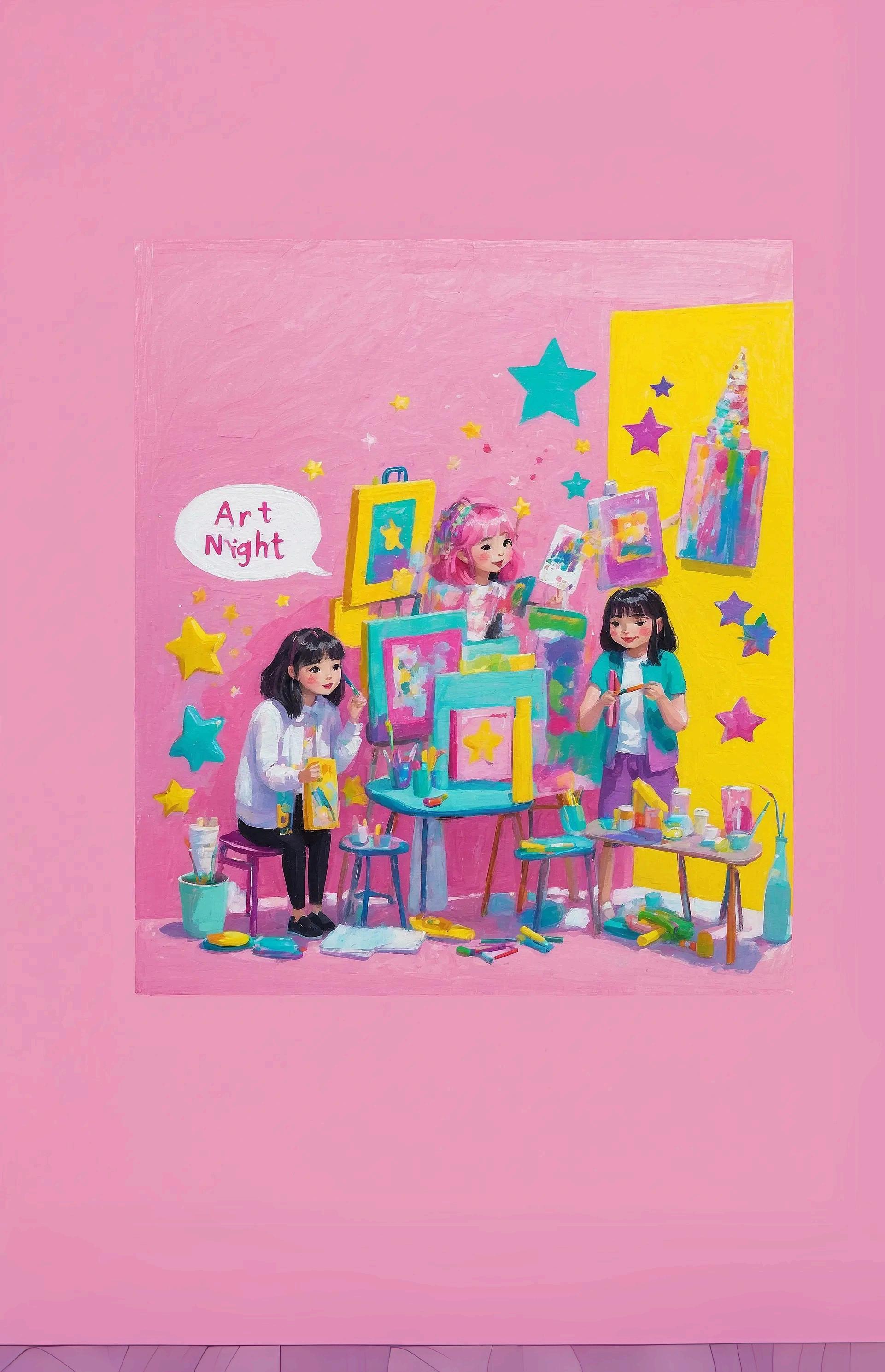 Families come together to express their creativity by making pieces of art and sharing them with each other.
