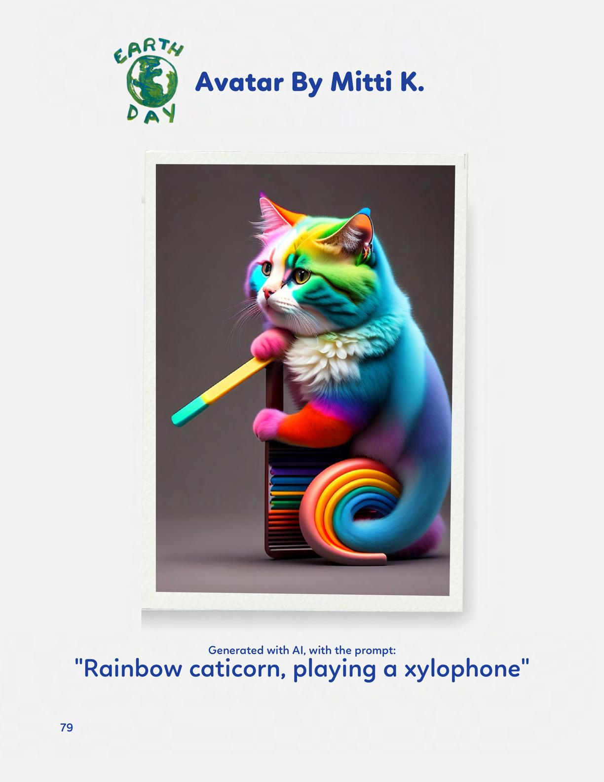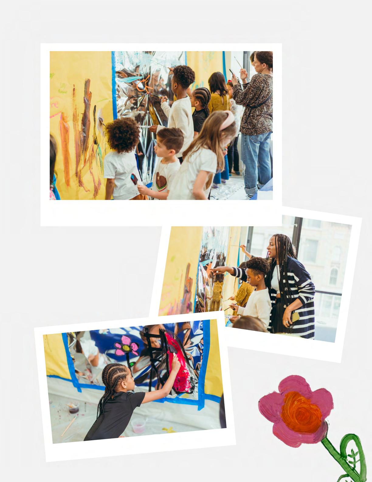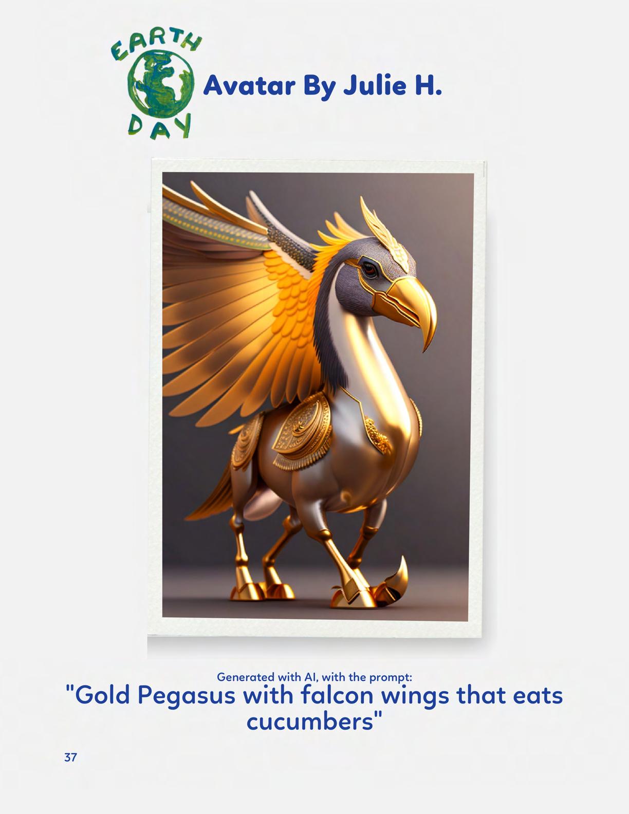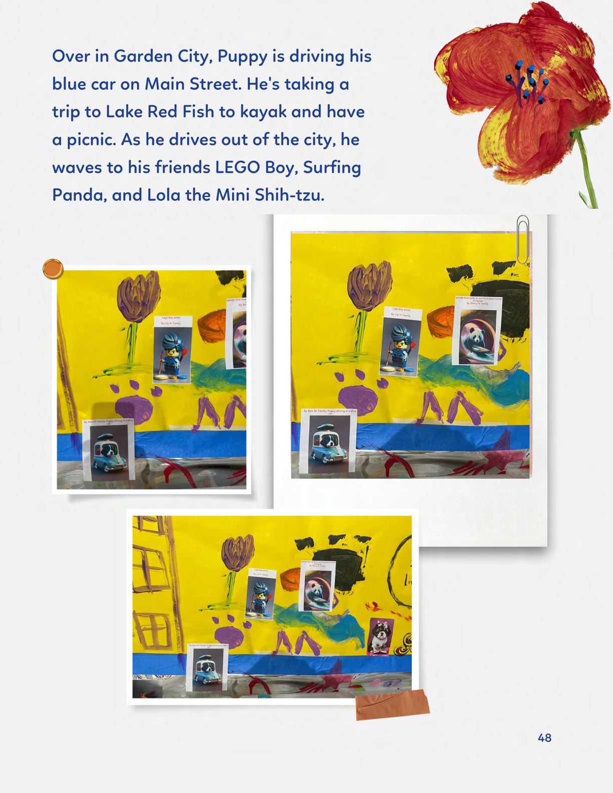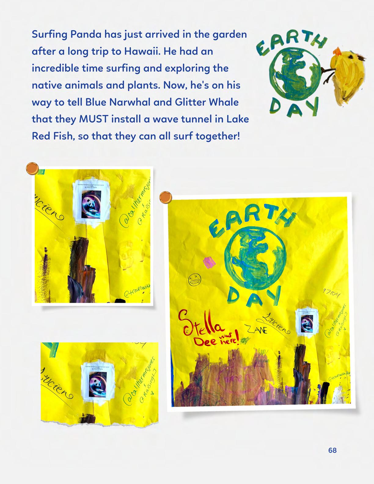 To celebrate Earth Day, we invited GIANT kids and their families to dream a community garden together and build it out of their imagination. Our young creators made their very own AI-generated avatars by imagining the traits of their dreams! Their avatars came to life in printed form and lived in the imaginary community garden that they all painted together, alongside our guest artist, Shawn Bullen. A rainbow kitten that loves gardening and recycling old things, a flying cheetah with rainbow stripes and laser eyes, a boxy robot with a big cowboy hat that dances to K-pop music, a kawaii muscular wolf with striped wings, and many more imaginary characters joined our garden. Over the span of two hours, we turned our studio from a blank canvas into a community garden with 100s of stories to discover... This storybook takes you on a journey of our imaginative worlds.
