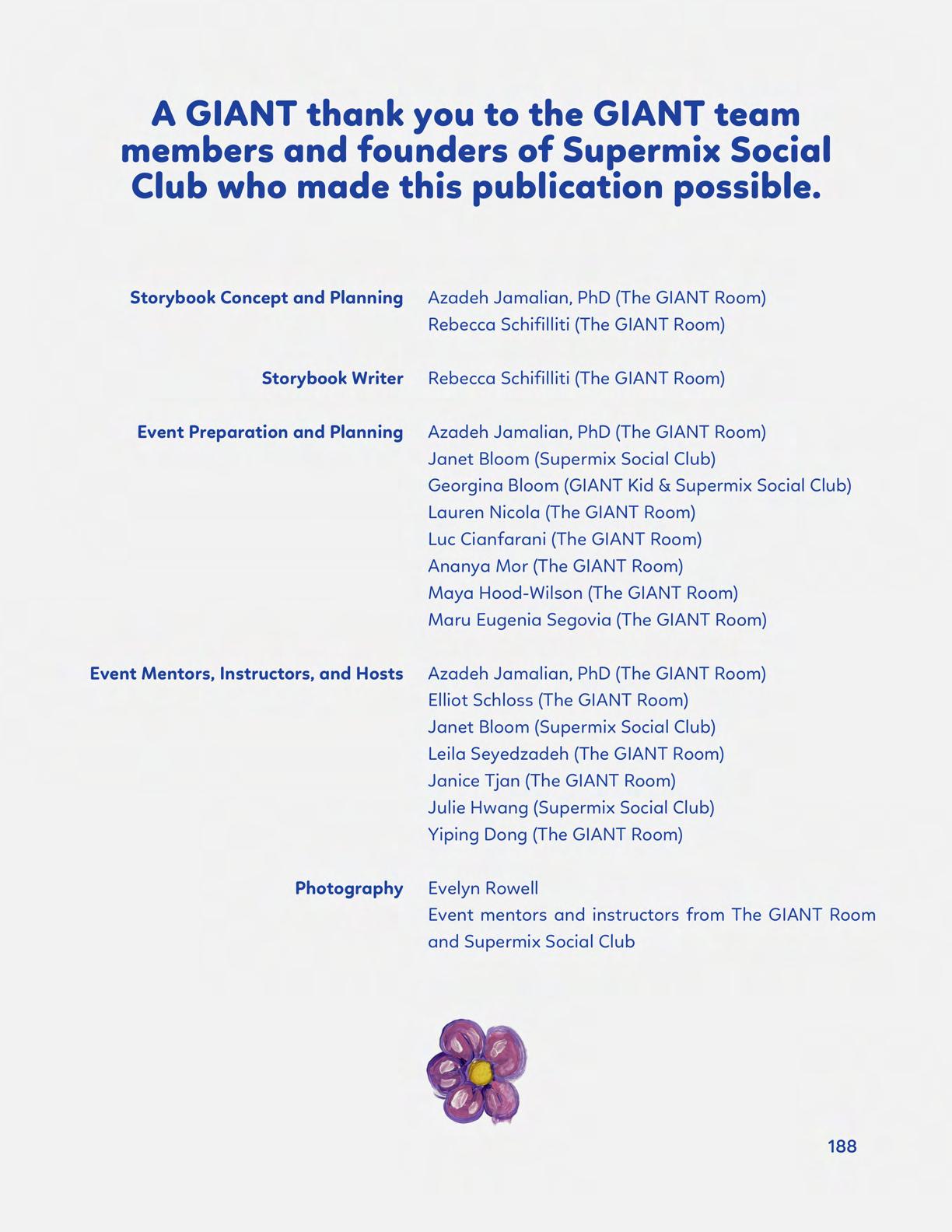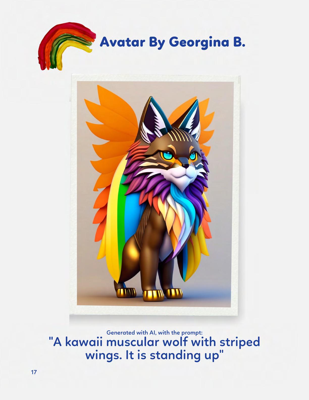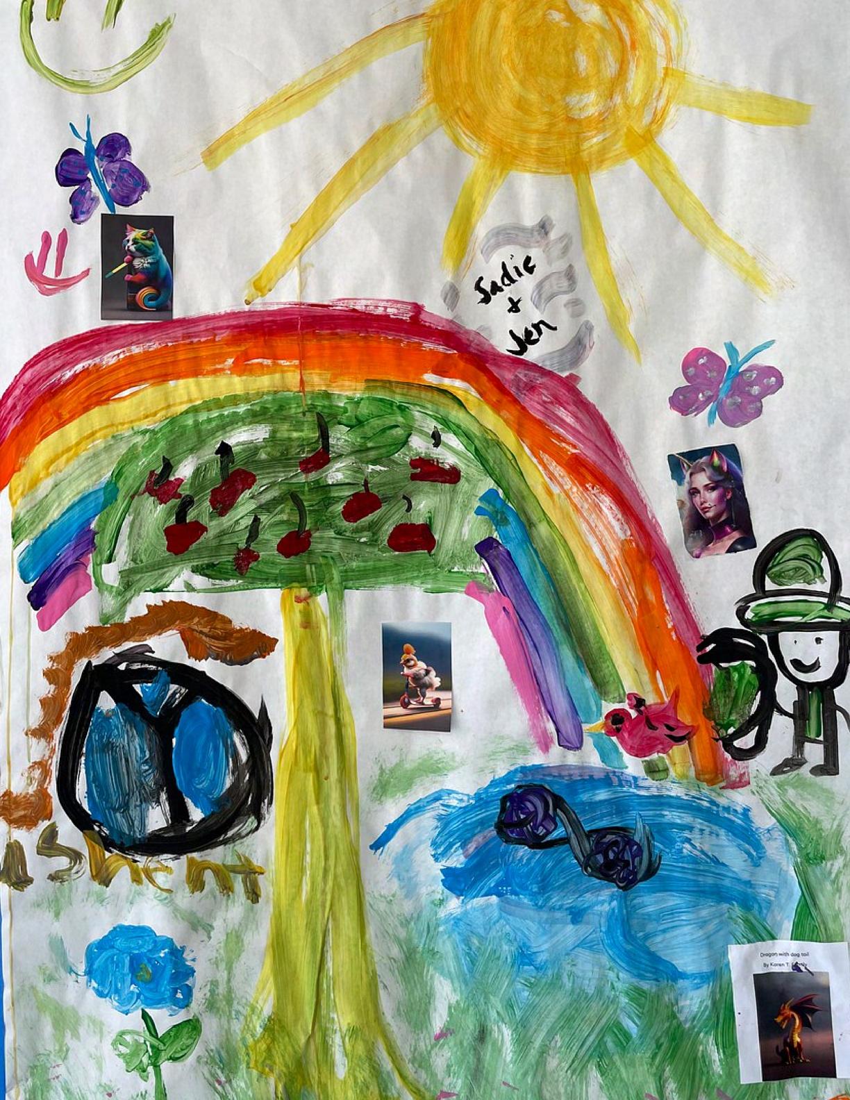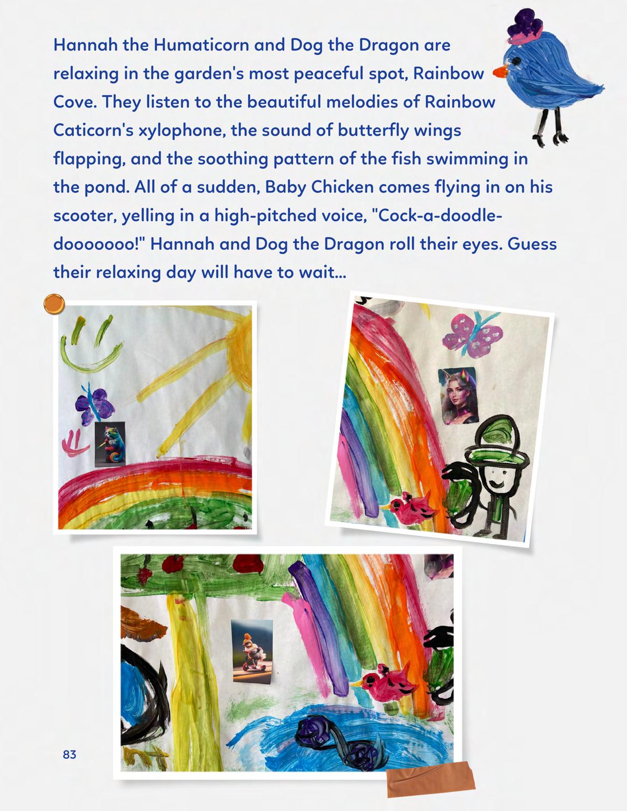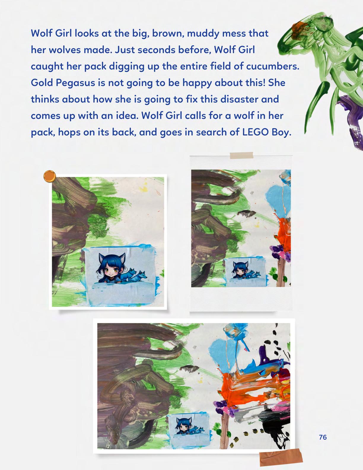 To celebrate Earth Day, we invited GIANT kids and their families to dream a community garden together and build it out of their imagination. Our young creators made their very own AI-generated avatars by imagining the traits of their dreams! Their avatars came to life in printed form and lived in the imaginary community garden that they all painted together, alongside our guest artist, Shawn Bullen. A rainbow kitten that loves gardening and recycling old things, a flying cheetah with rainbow stripes and laser eyes, a boxy robot with a big cowboy hat that dances to K-pop music, a kawaii muscular wolf with striped wings, and many more imaginary characters joined our garden. Over the span of two hours, we turned our studio from a blank canvas into a community garden with 100s of stories to discover... This storybook takes you on a journey of our imaginative worlds.
