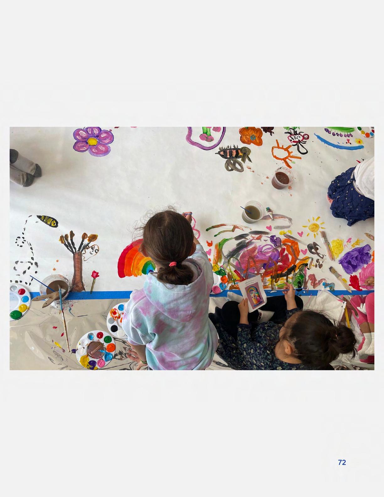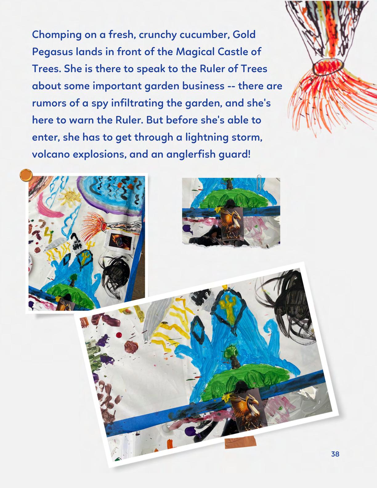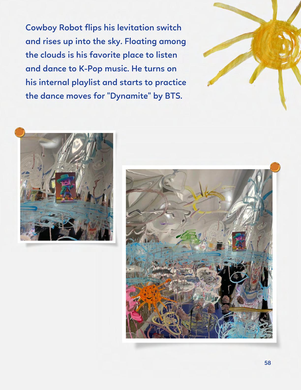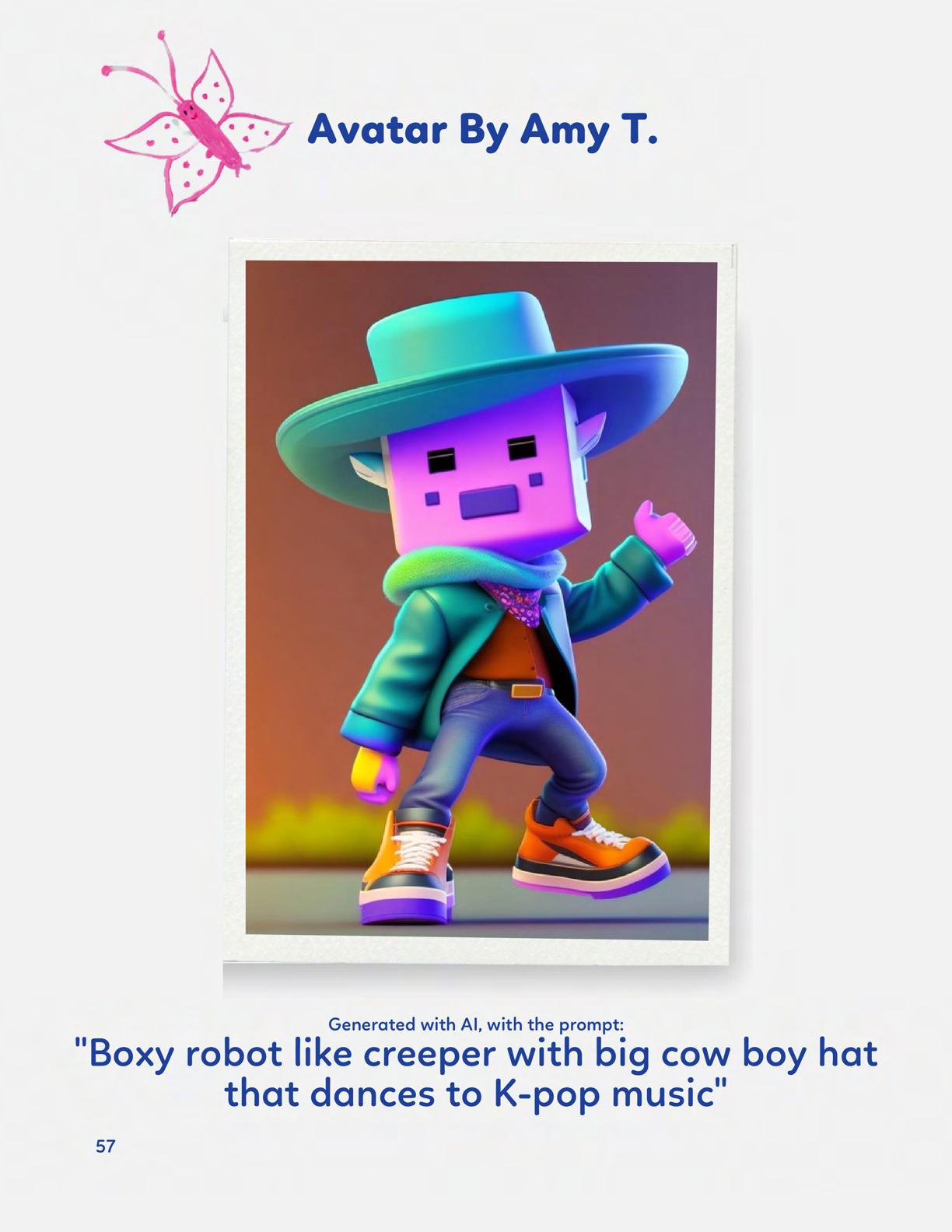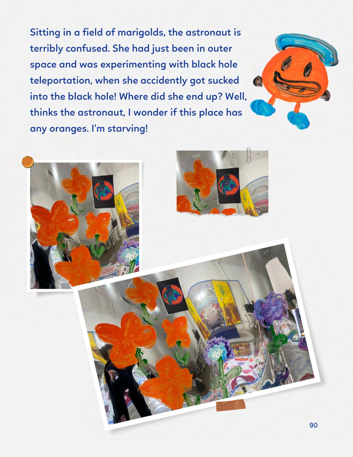 To celebrate Earth Day, we invited GIANT kids and their families to dream a community garden together and build it out of their imagination. Our young creators made their very own AI-generated avatars by imagining the traits of their dreams! Their avatars came to life in printed form and lived in the imaginary community garden that they all painted together, alongside our guest artist, Shawn Bullen. A rainbow kitten that loves gardening and recycling old things, a flying cheetah with rainbow stripes and laser eyes, a boxy robot with a big cowboy hat that dances to K-pop music, a kawaii muscular wolf with striped wings, and many more imaginary characters joined our garden. Over the span of two hours, we turned our studio from a blank canvas into a community garden with 100s of stories to discover... This storybook takes you on a journey of our imaginative worlds.