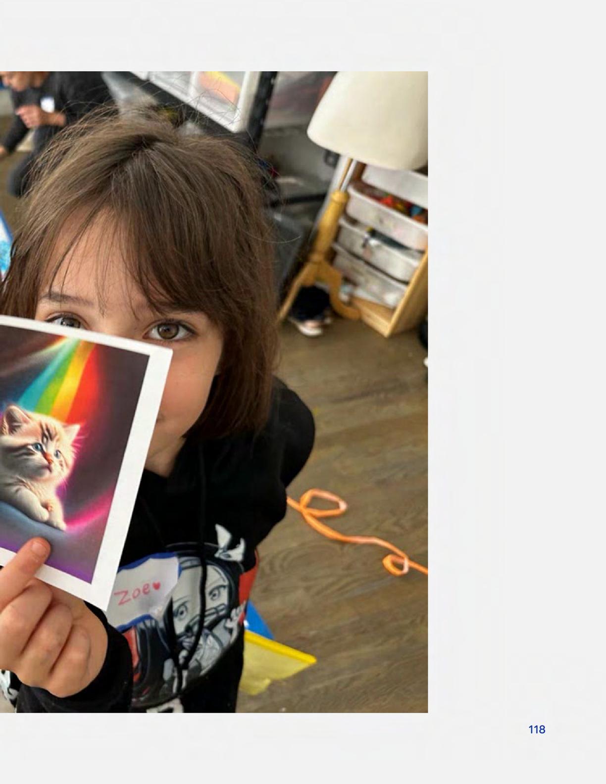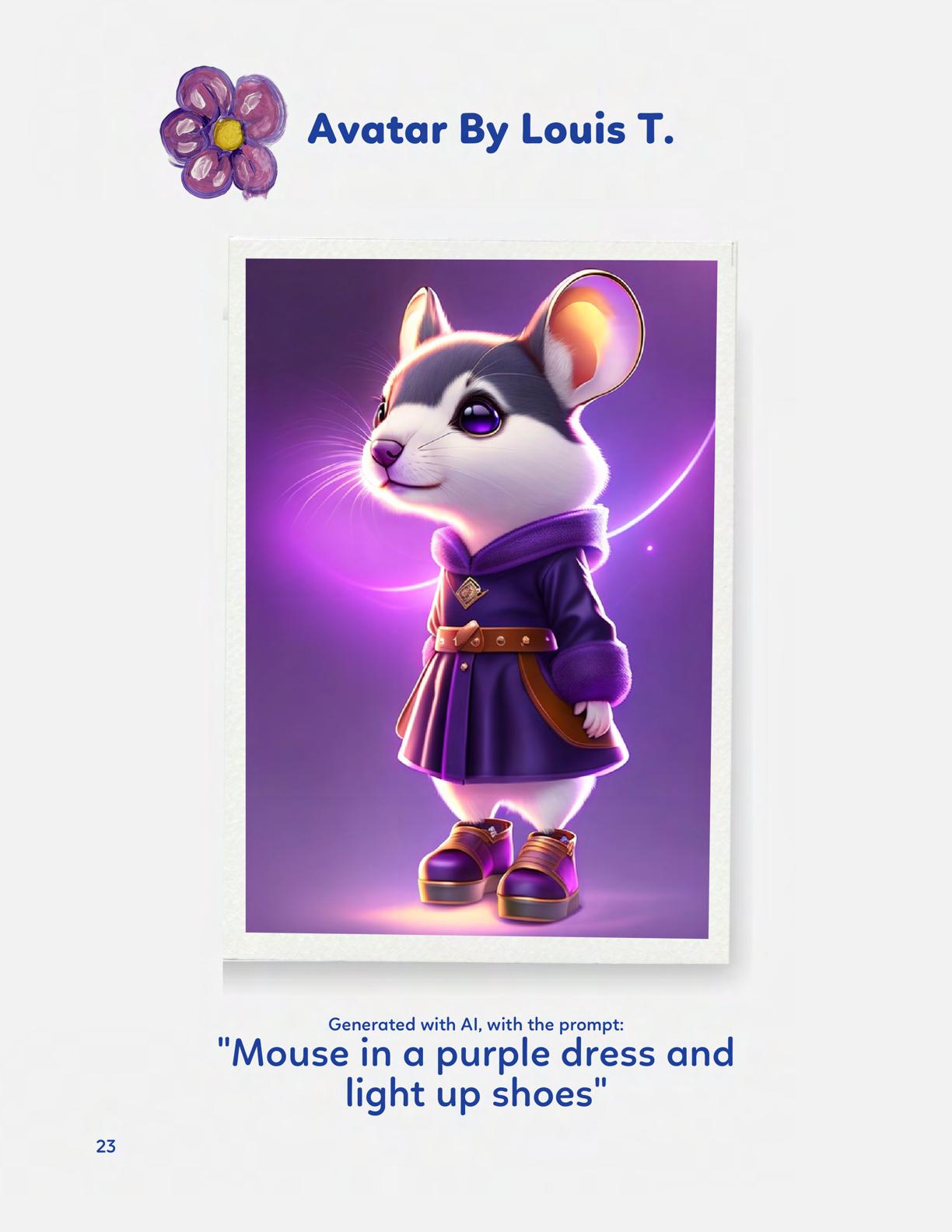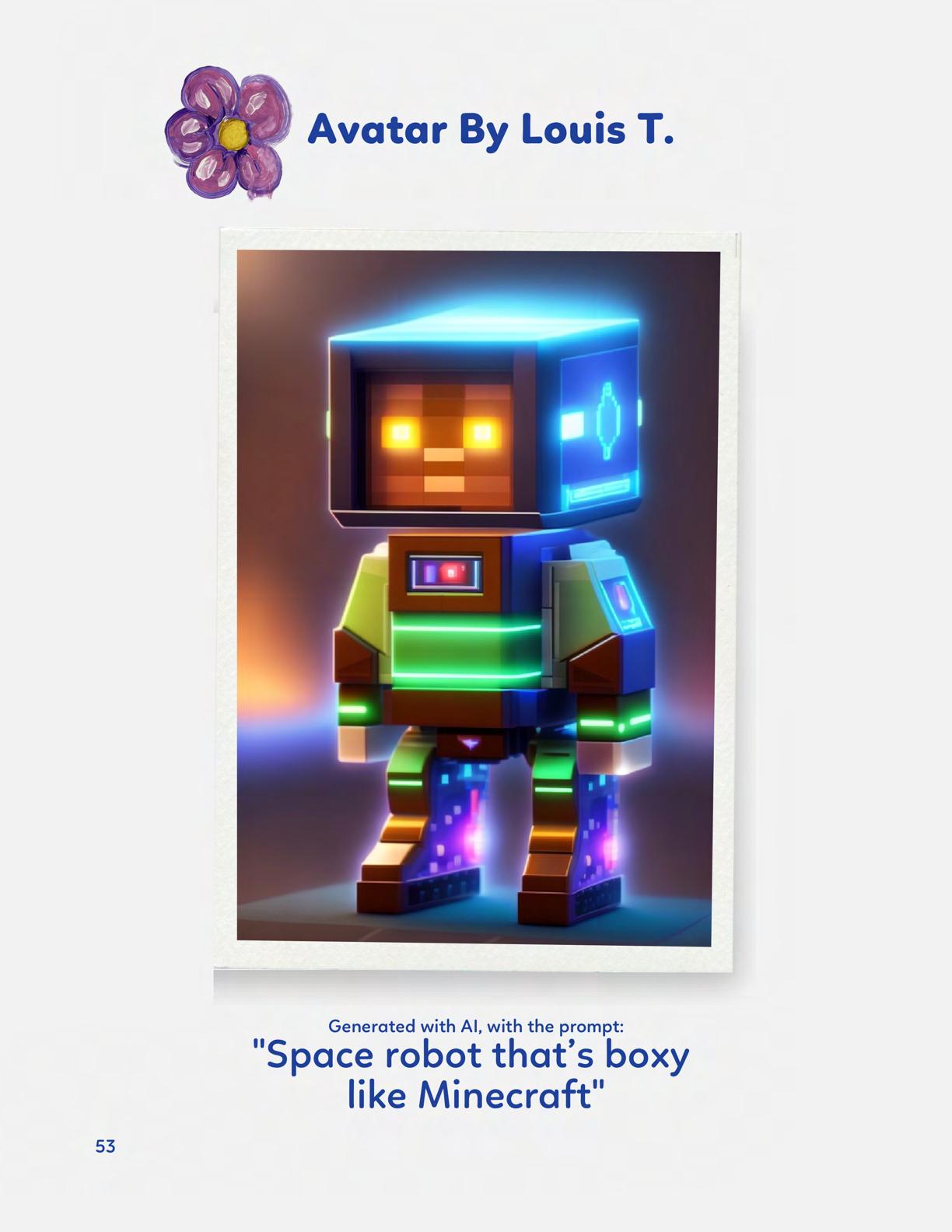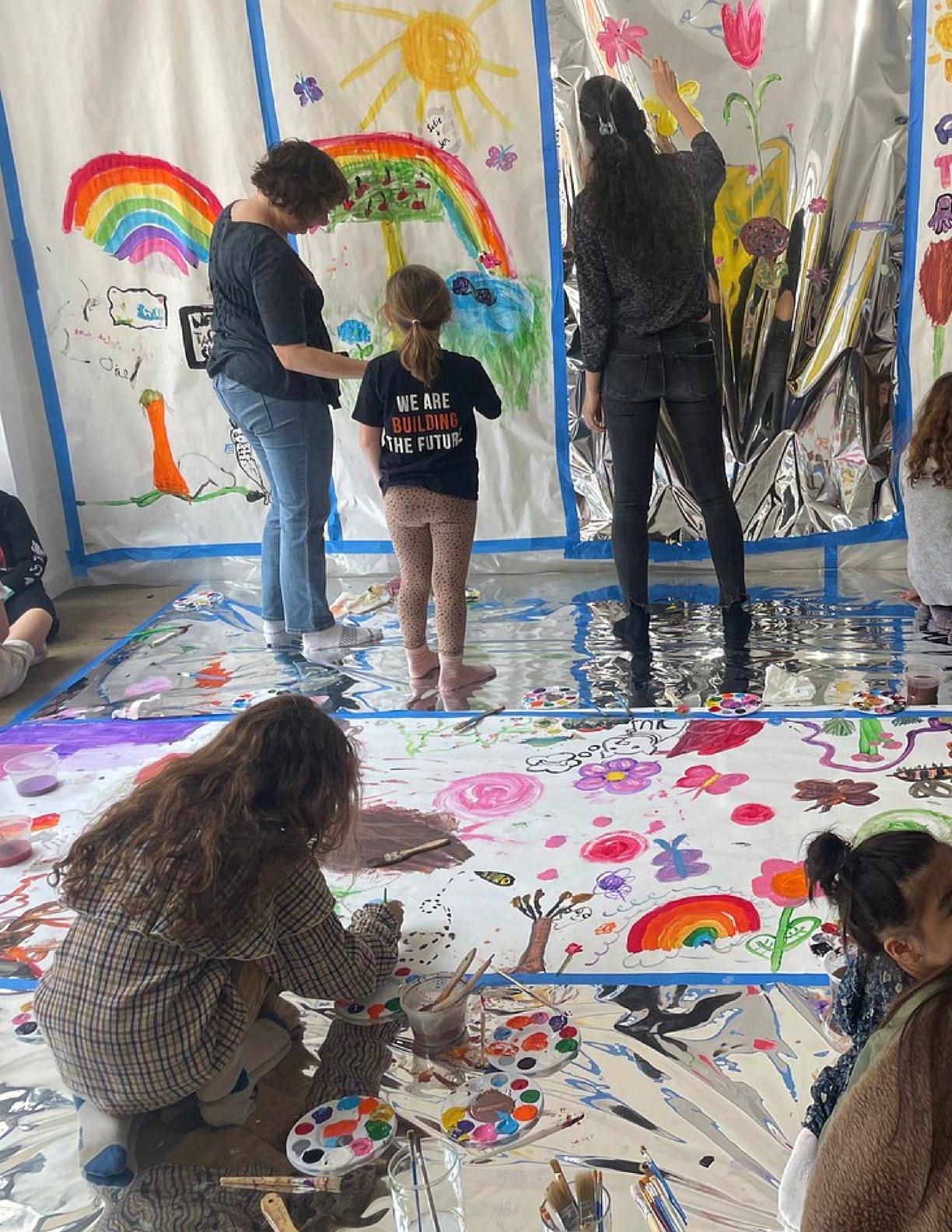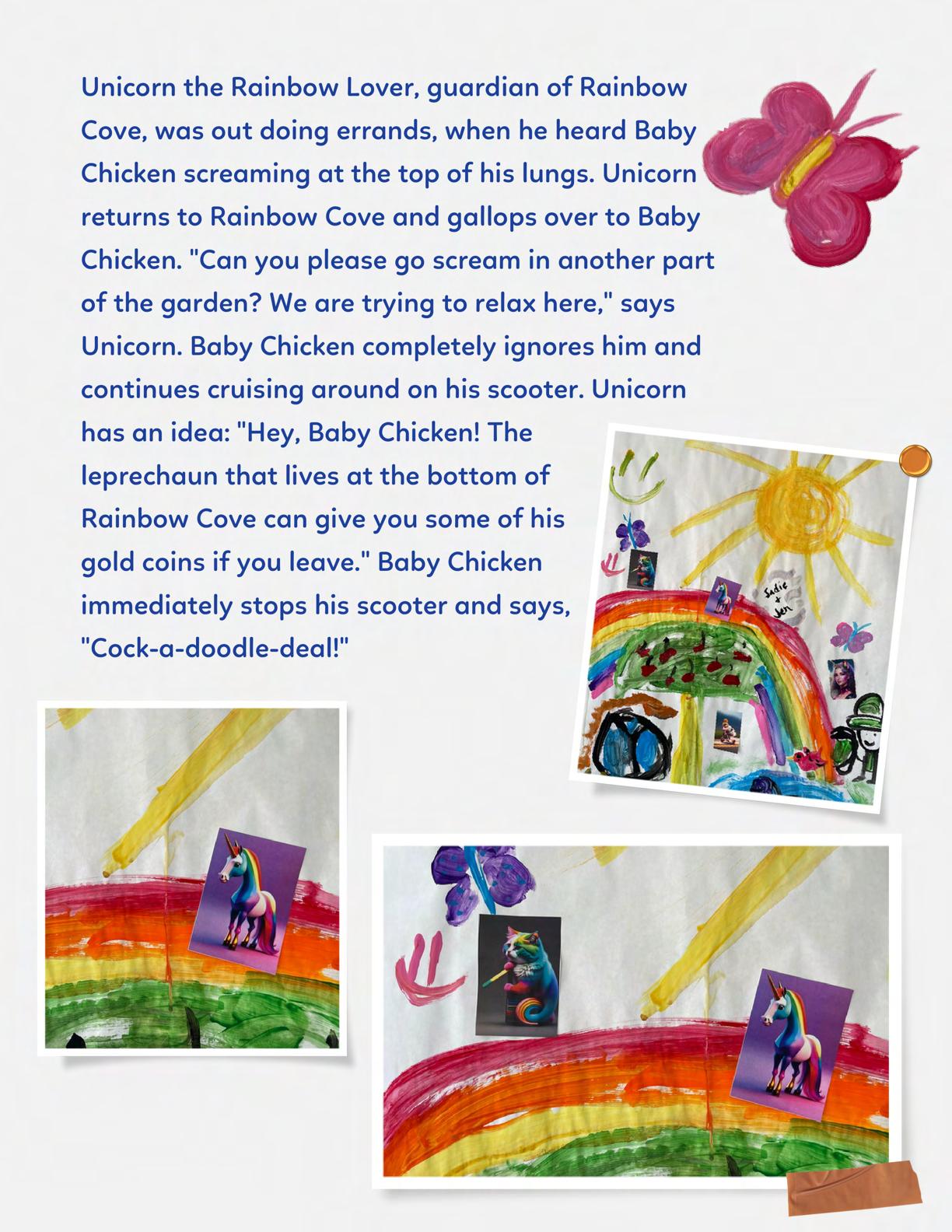 To celebrate Earth Day, we invited GIANT kids and their families to dream a community garden together and build it out of their imagination. Our young creators made their very own AI-generated avatars by imagining the traits of their dreams! Their avatars came to life in printed form and lived in the imaginary community garden that they all painted together, alongside our guest artist, Shawn Bullen. A rainbow kitten that loves gardening and recycling old things, a flying cheetah with rainbow stripes and laser eyes, a boxy robot with a big cowboy hat that dances to K-pop music, a kawaii muscular wolf with striped wings, and many more imaginary characters joined our garden. Over the span of two hours, we turned our studio from a blank canvas into a community garden with 100s of stories to discover... This storybook takes you on a journey of our imaginative worlds.