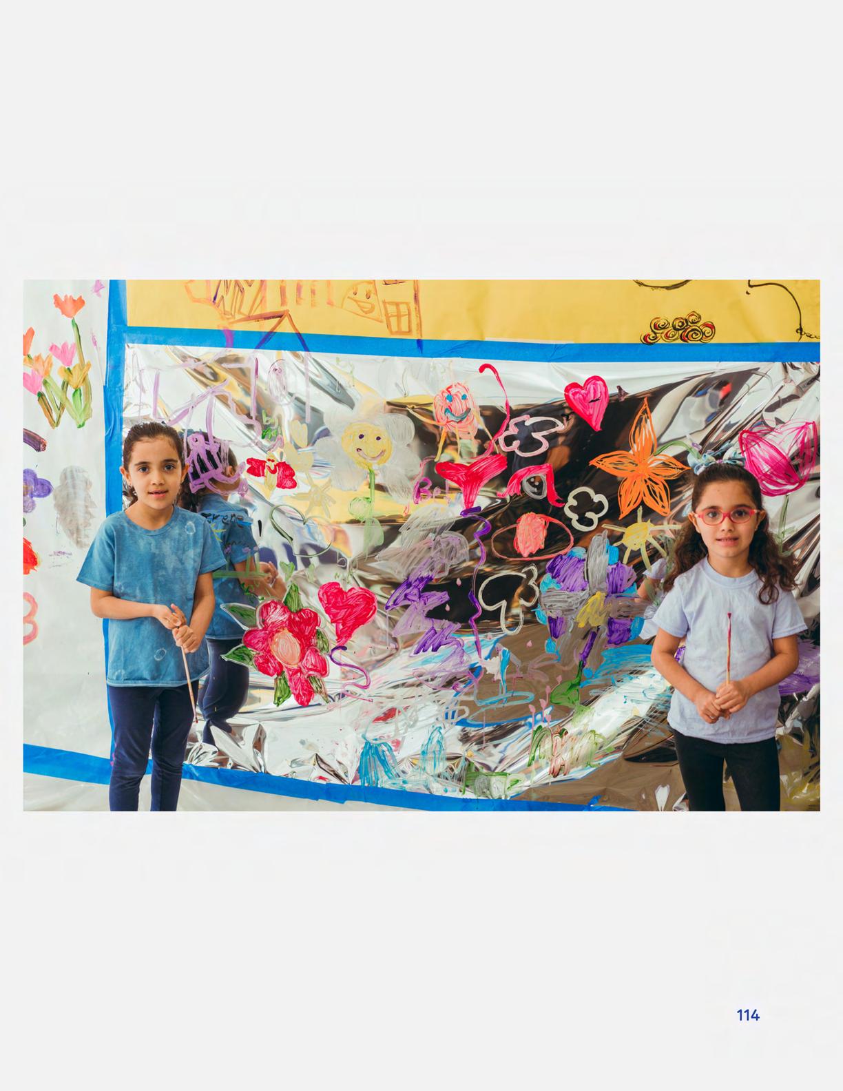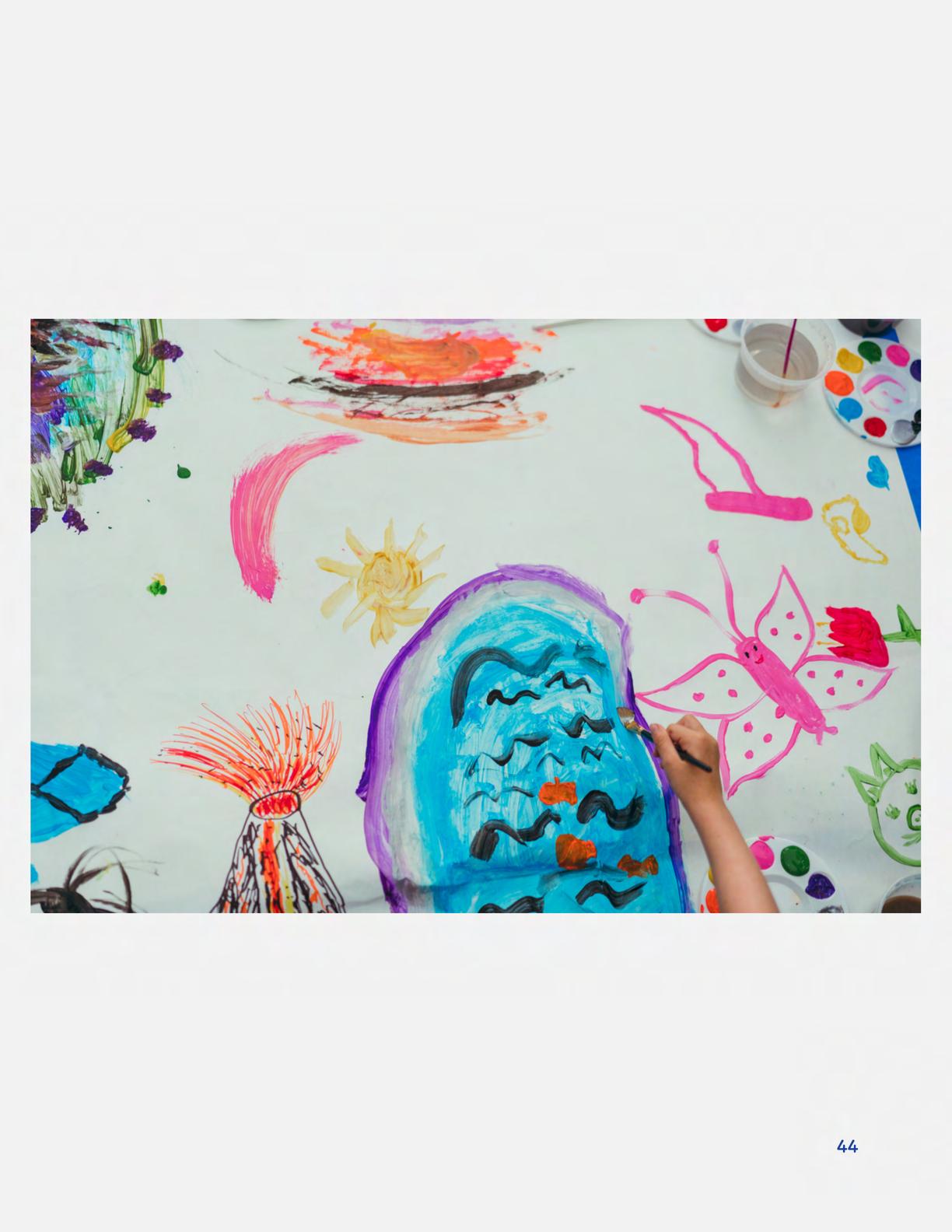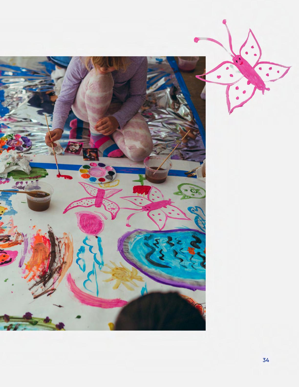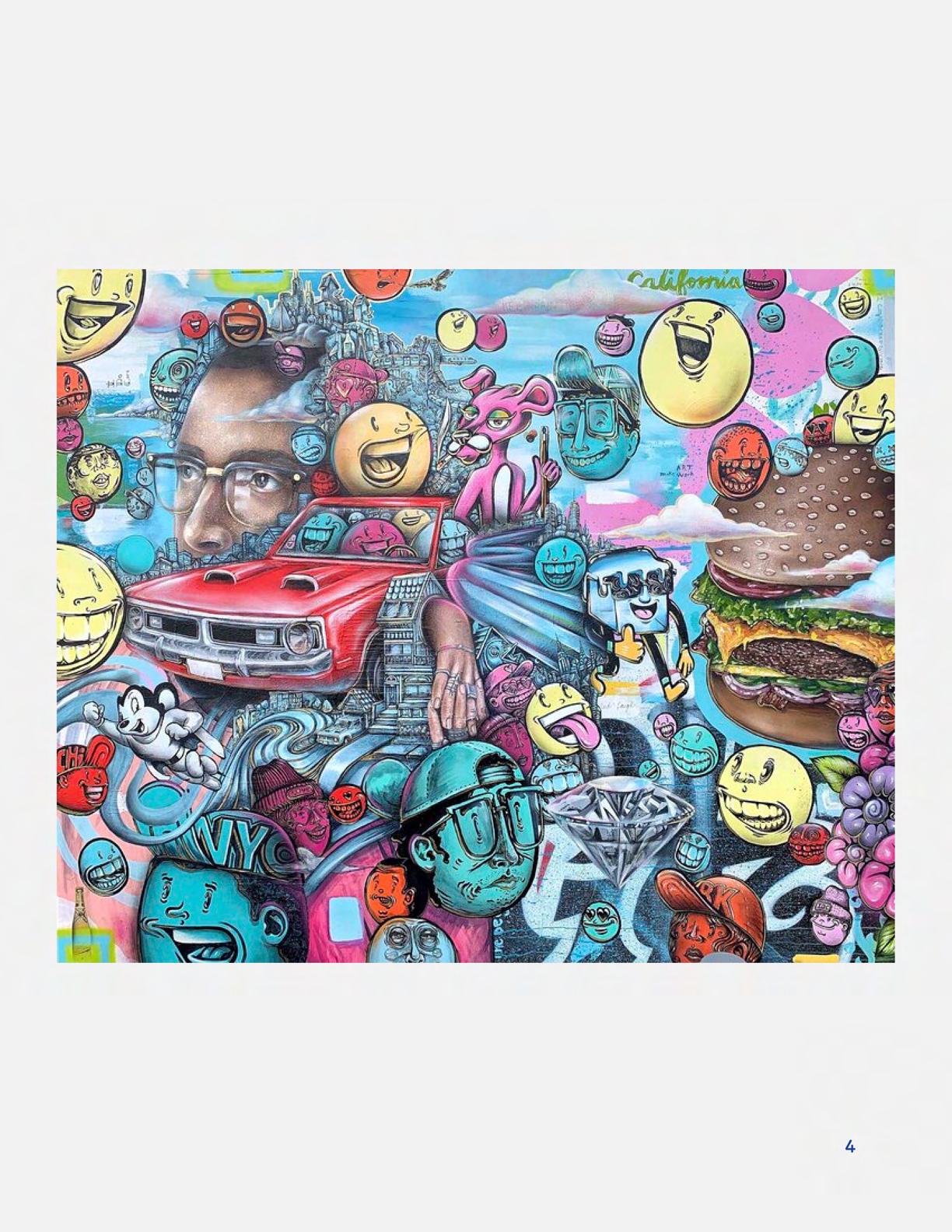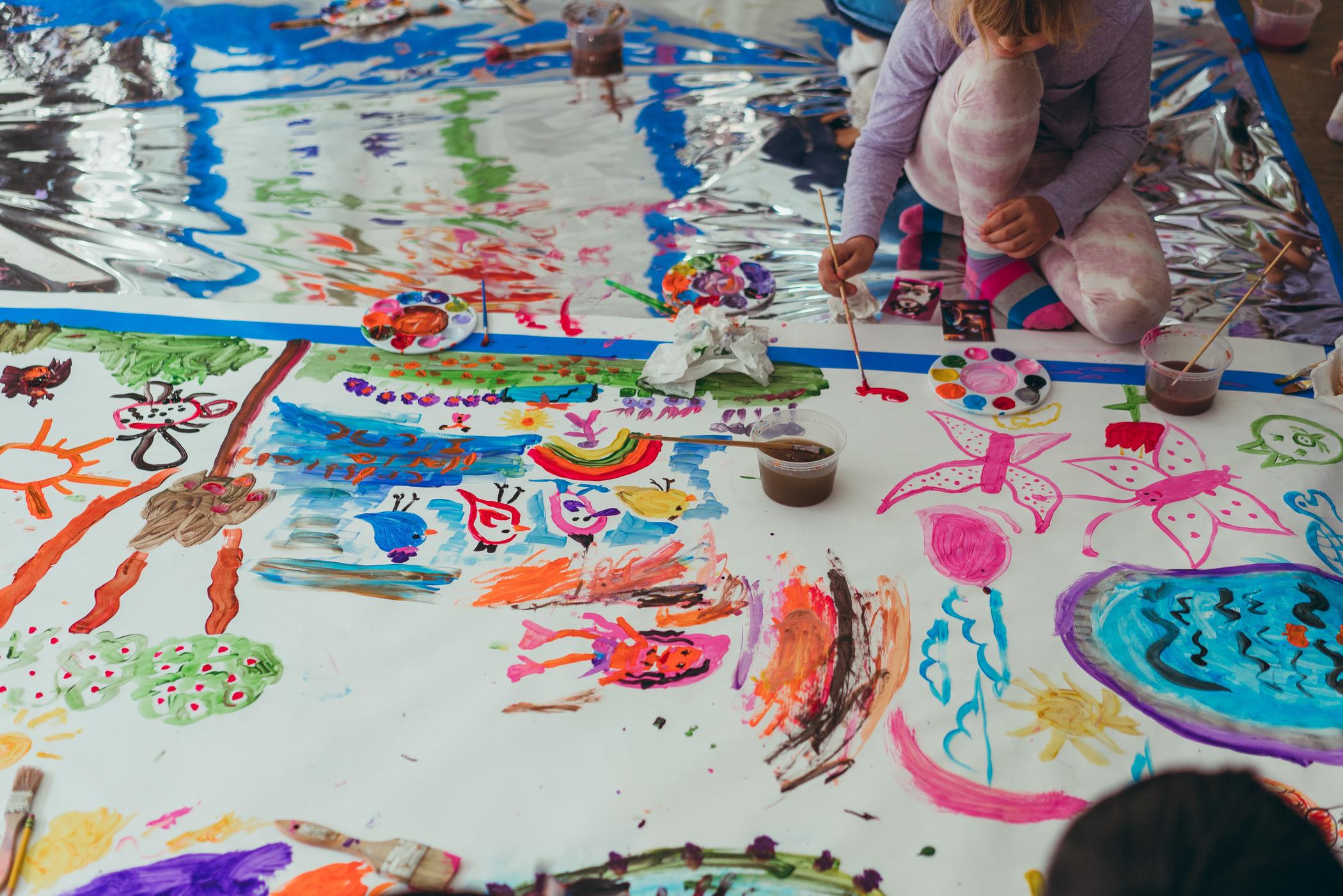 To celebrate Earth Day, we invited GIANT kids and their families to dream a community garden together and build it out of their imagination. Our young creators made their very own AI-generated avatars by imagining the traits of their dreams! Their avatars came to life in printed form and lived in the imaginary community garden that they all painted together, alongside our guest artist, Shawn Bullen. A rainbow kitten that loves gardening and recycling old things, a flying cheetah with rainbow stripes and laser eyes, a boxy robot with a big cowboy hat that dances to K-pop music, a kawaii muscular wolf with striped wings, and many more imaginary characters joined our garden. Over the span of two hours, we turned our studio from a blank canvas into a community garden with 100s of stories to discover... This storybook takes you on a journey of our imaginative worlds.