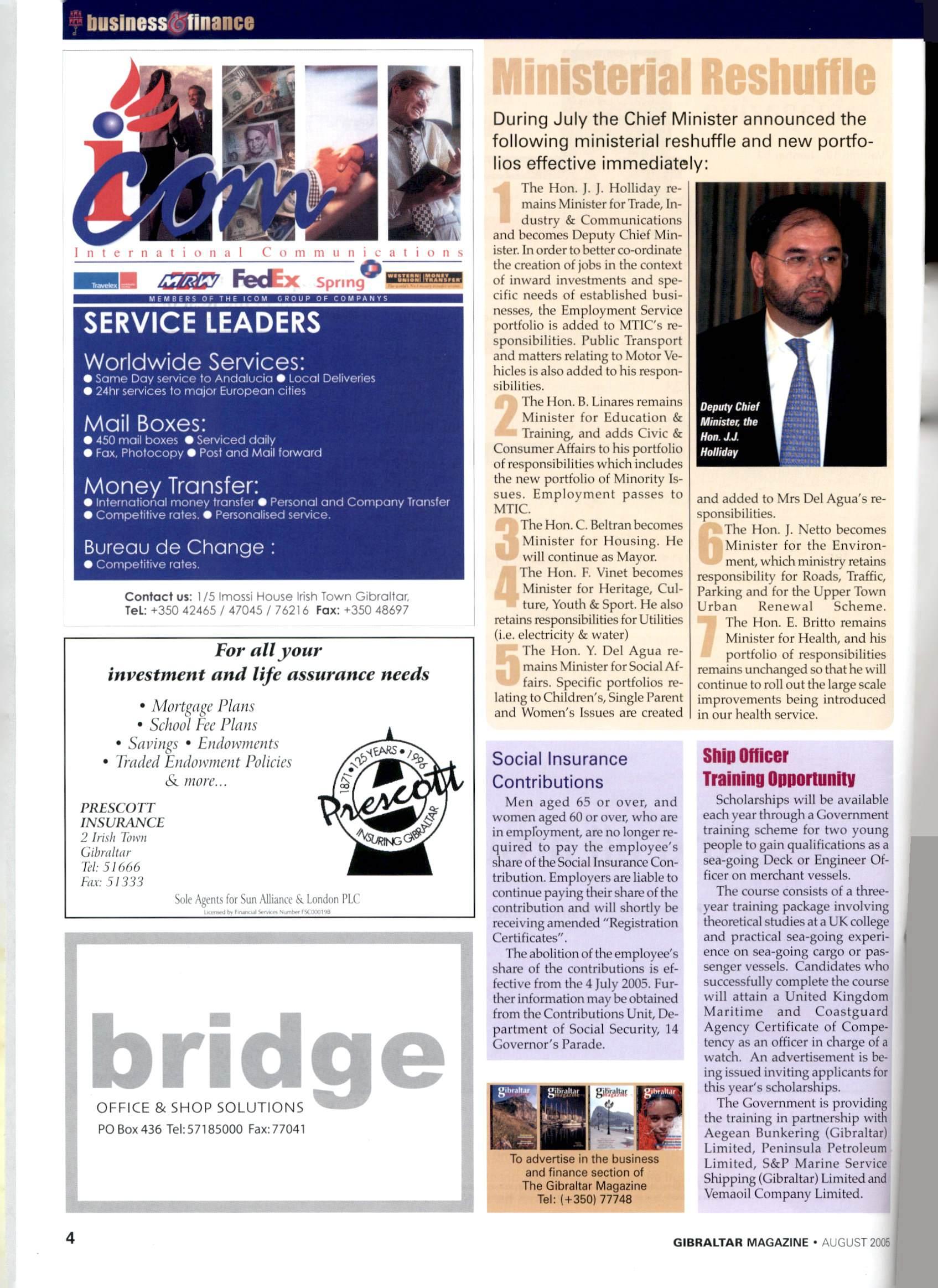 advertise in the business and finance section of The Gibraltar Magazine Tel: (+3501 77748