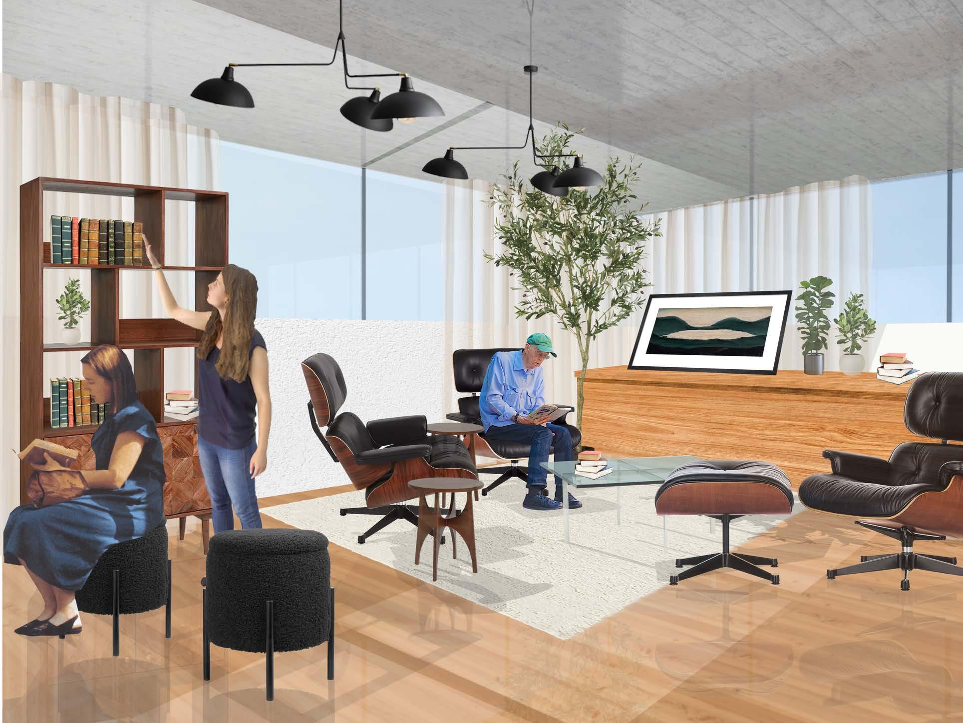 Next to the communal reading space is a the co-working room. This space allows residents to work from home, letting home remain home and not an extension of the work place