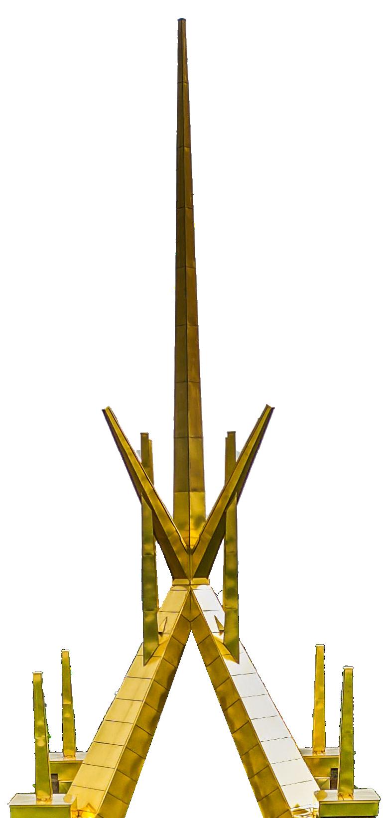 Geoffrey Clarke’s uncompromisingly modern gold design was accepted, despite opposition from some quarters, and the finished structure, although hugely controversial at the time, has over the years become the cherished, admired, and most recognisable feature of the skyline of the town.