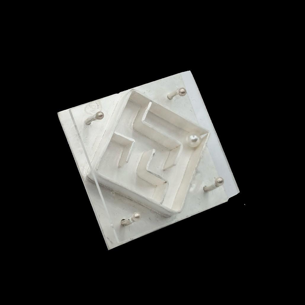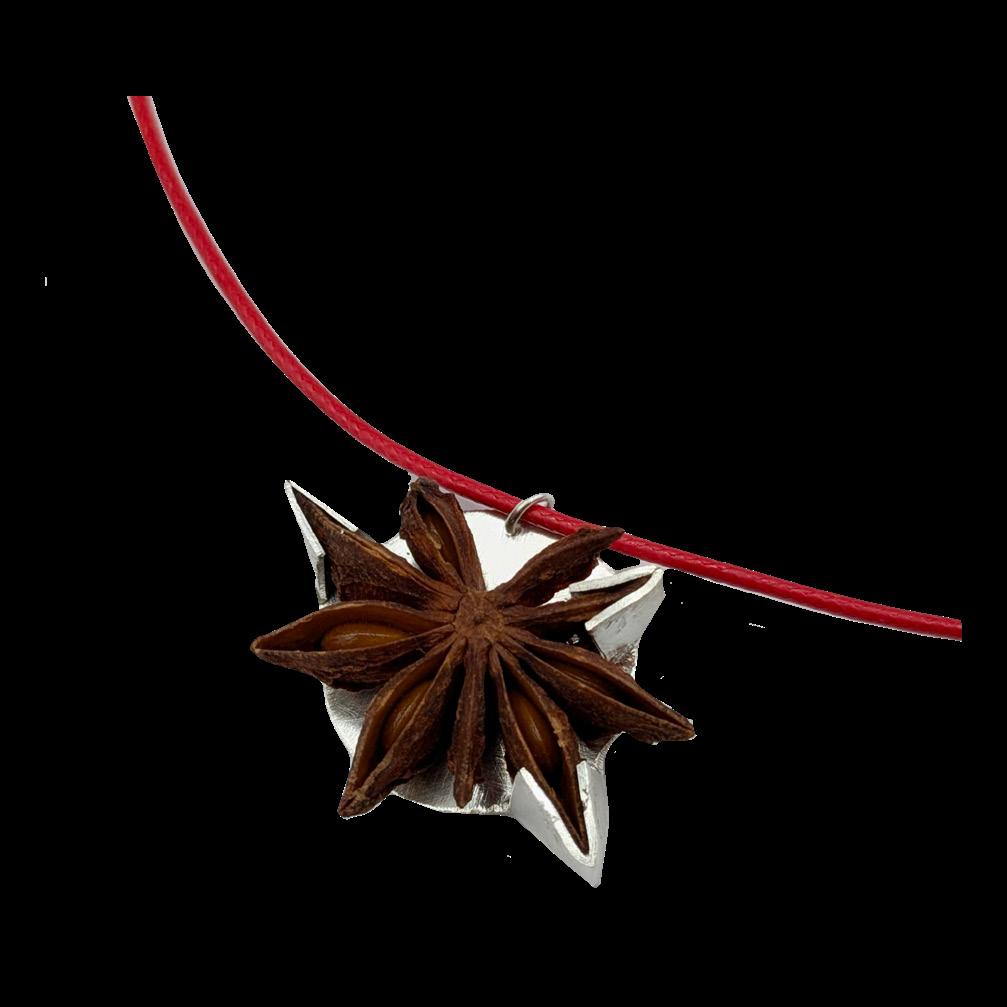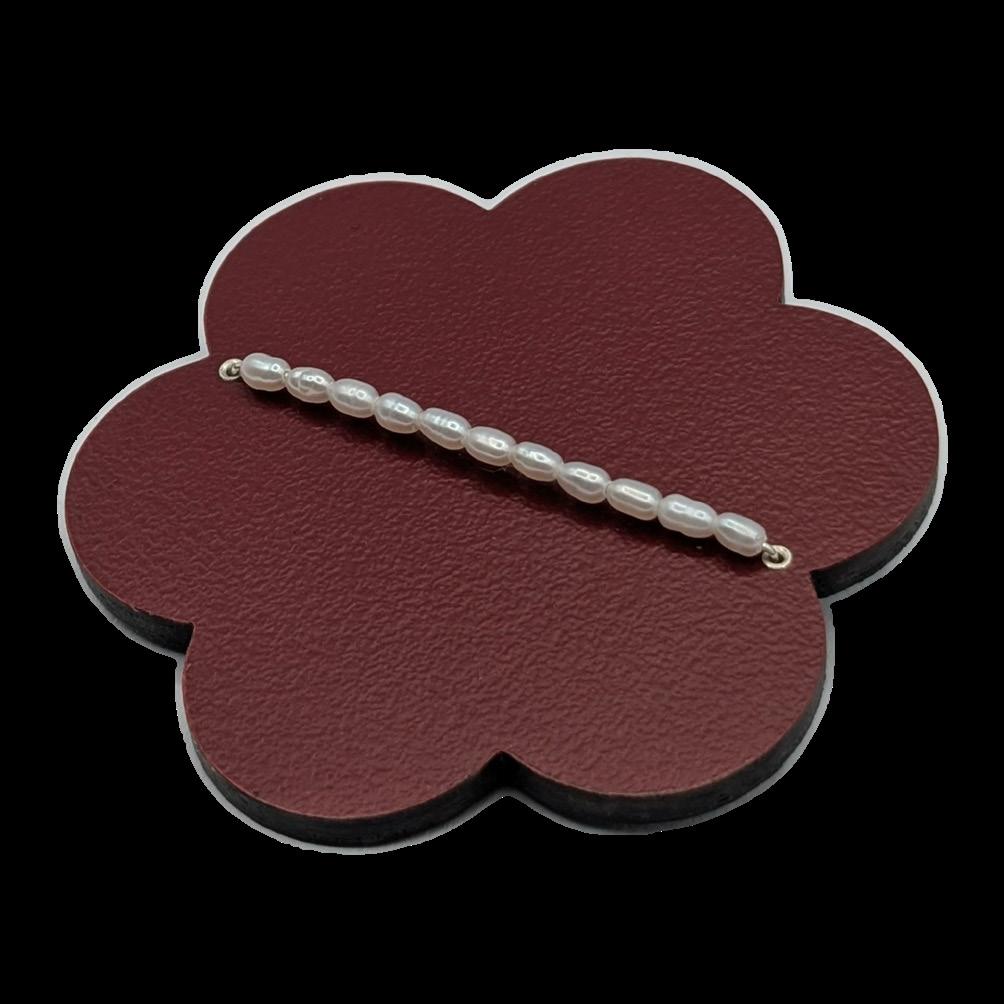 ‘Red Flower Brooch’ wood, formica, silver & freshwater pearls brooch