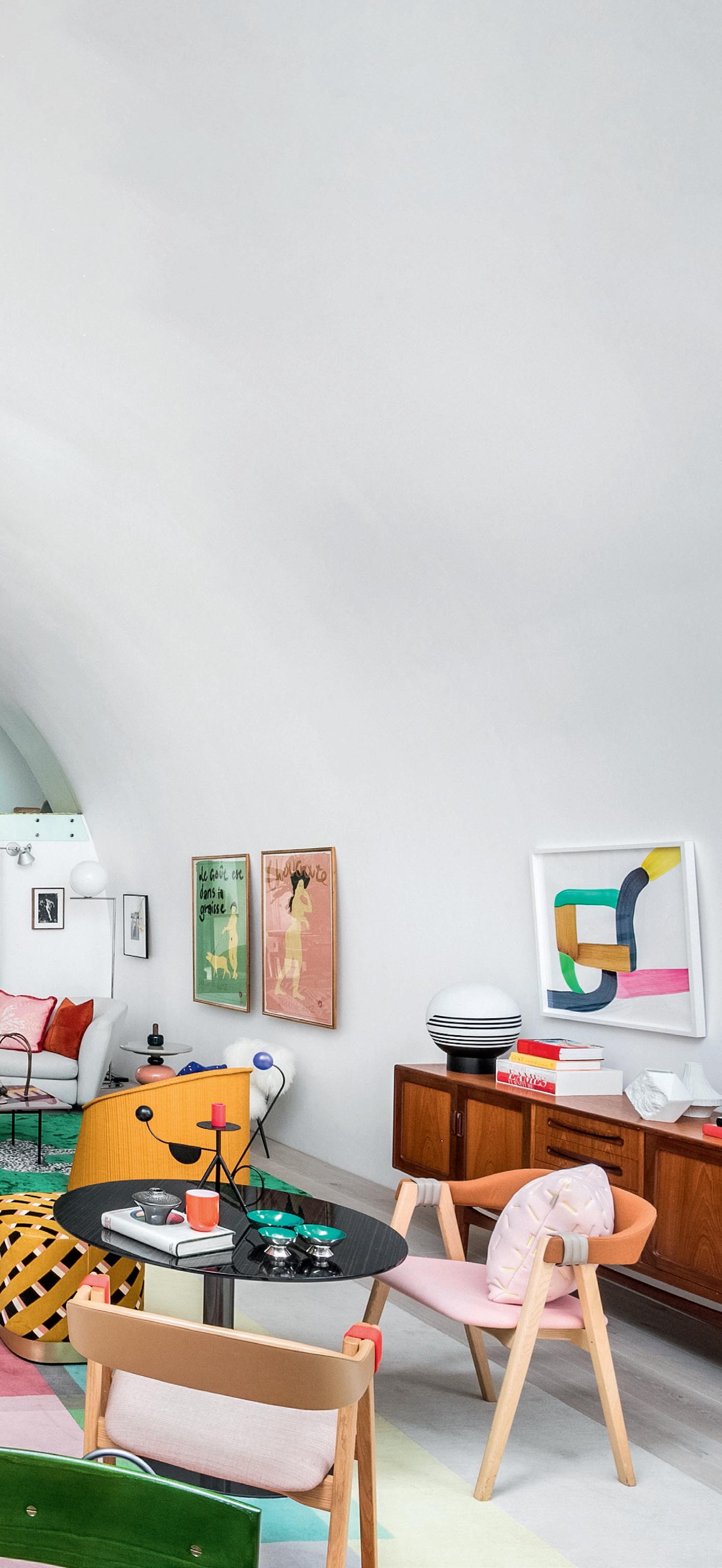 I really felt strongly about keeping the walls a blank canvas, and with that you have to make very brave colour choices. I filled each area with colour using objects that can be removed and changed - I don’t think I would ever touch the walls, as you need the neutrality to emphasise the brightness. Imagine how overwhelming it would be if they were painted.