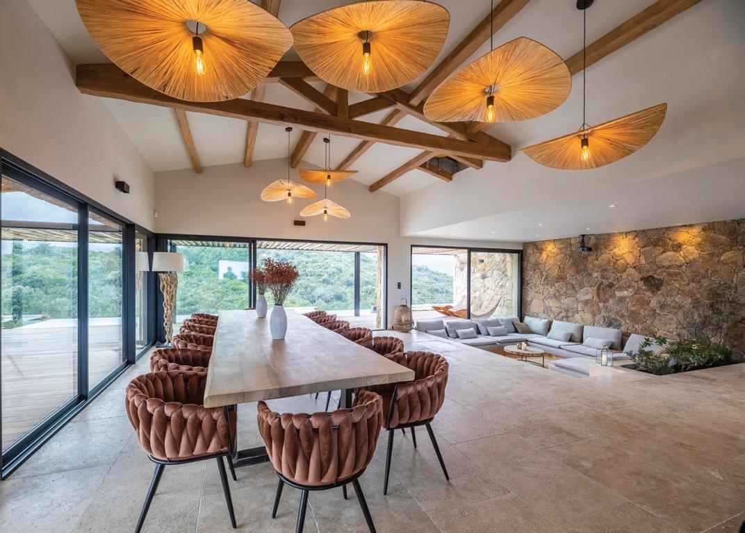 There are villas with incredible views and then there is Casa di Macine. Perched atop the forestcloaked mountains of the PortoVecchio region, on the south east of Corsica, this villa offers panoramas you can only dream of. And they can be enjoyed from pretty much any angle: from the heated infinity pool, the expansive pergola-style terrace, the outdoor Jacuzzi, the yoga deck, the huge glass sliding doors from the master bedroom… There are endless spots to soak up the wild, fragrant beauty of this rugged Mediterranean island.