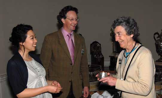 Theresa Nguyen and the Hon. Richard Curzon present the silver beaker made during Theresa’s eight month residency to prize winner Mrs Sheila Lake. Theresa said the experience “really enabled me to feel deeply connected to the silversmiths of the eighteenth century that worked here and produced such beautiful pieces”. She found that visitors were “genuinely surprised” by the tactile nature of silver, and gave her lots of positive feedback about her live demonstrations.