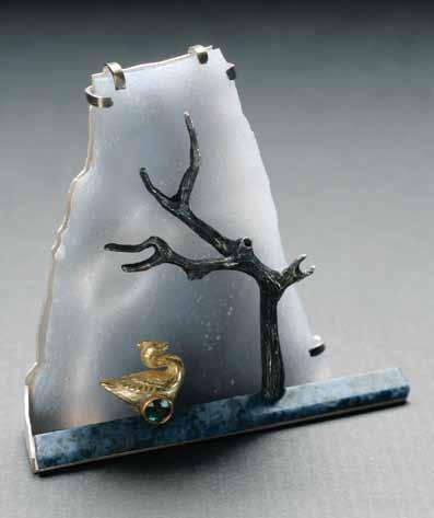 The Duchess of Gloucester showed great interest in Tomasz Donocik’s ring when she visited on 27 September. The twoweek fair showcased the work of 180 craftsmen, with 10 stands being allocated free of charge to selected recent graduates. Exhibitors reported that the economic climate had prompted changes in visitor buying patterns, with silversmiths experiencing an increase in sales of smaller items, whilst jewellers found that clients gravitated towards more expensive statement pieces. The Best New Design awards in both weeks went to two recent graduates: jeweller Emmeline Hastings in Week One and silversmith Charlotte Tollyfield in Week Two.