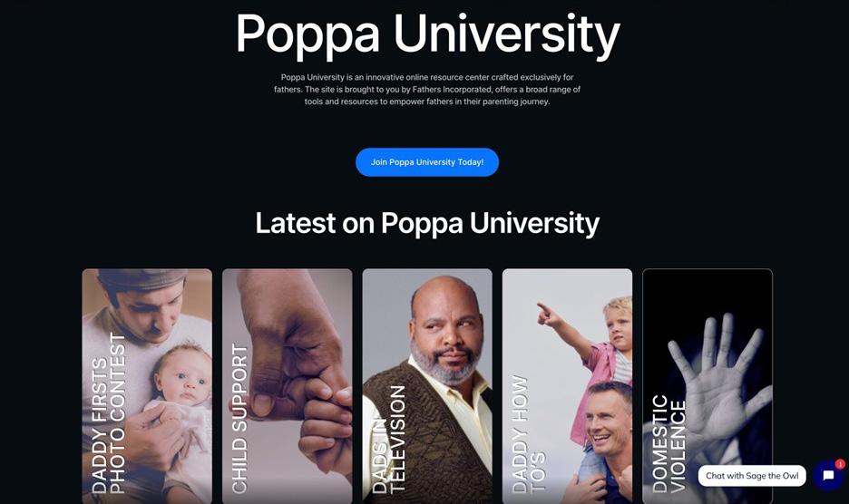 For Father’s Day, forget the tie, lawn equipment or new tool for the toolbox, give Dad the gift of free advice, endless dad jokes, resources and a virtual AI-powered confidant name Sage the Owl, to help him level up on his fatherhood skills. During its milestone 20th anniversary year, and just in time for Father’s Day 2024, Atlanta-based non-profit, Fathers Incorporated, launches PoppaUniversity.com, a free, dedicated online resource and virtual community to support fathers as they raise their children and navigate fatherhood. Poppa University offers new or seasoned fathers, or even actively involved grandfathers: