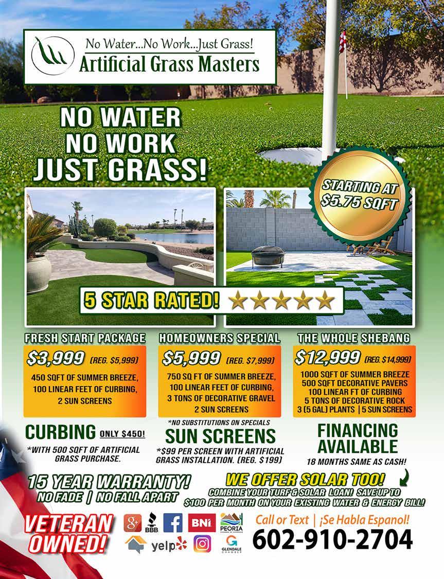 JANUARY 2023 • THE GRAND SEASON 35 FOR ADVERTISING INFORMATION CALL (623) 594-1630 WE WILL BEAT OUR COMPETITORS’ PRICES. SHOP AND COMPARE! ArizonaTurfProfessionals.com Prices include all materials and installation! $2000 job minimum. ROC 328529 Additional discounts available for Veterans, First Responders and all Essential Workers. 623.280.1992 Call for a consultation today! TRUST YOUR ARTIFICIAL TURF PROJECT TO US TAKE BACK YOUR WEEKEND! Pet & Kid Safe Reduces Water Bills No More Mowing Easy Cleaning Long Lasting Environmentally Friendly starting at TURF PAVERS CURBING TRAVERTINE IRRIGATION $4.95 Artificial Turf SQ. FT. starting at $12.95 Travertine SQ. FT. starting at $7.75 Phoenix Pavers SQ. FT. 0% Financing O.A.C. Offer Expires 2/15/23