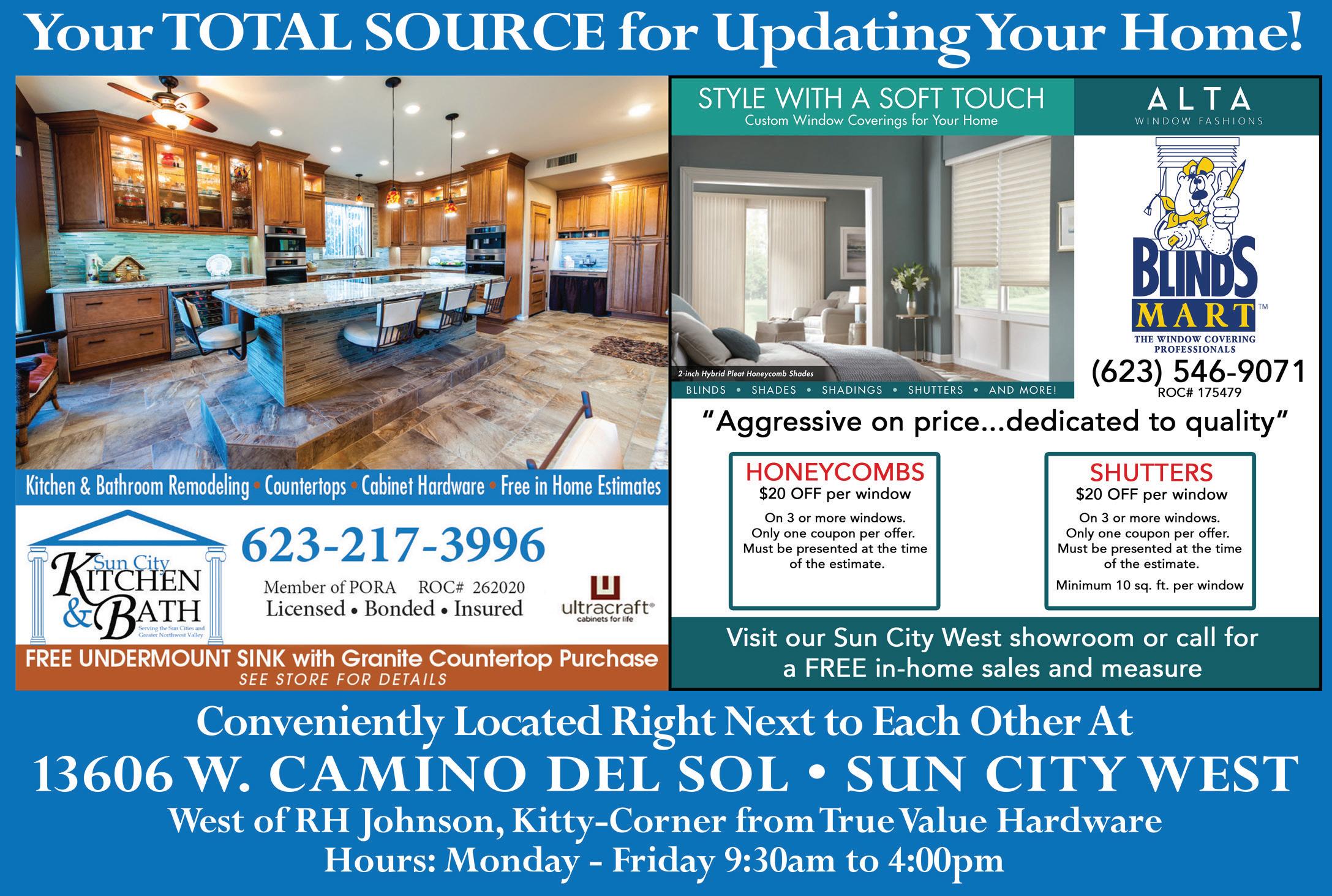 MAY 2023 • THE GRAND SEASON 7 FOR ADVERTISING INFORMATION CALL (623) 594-1630 Kitchen & Bathroom • Designer Showroom Your Custom Remodeling Specialist 11126 W. Wisconsin Ave, #5 - Youngtown Licensed/Bonded/Insured Limited Liability Corp • ROC #155822 KB02 VISIT OUR WEBSITE FOR DISCOUNT COUPONS! Listed HOA/PORA CABINETRY PAINT REFINISHING SPECIALISTS CUSTOM INTERIOR & EXTERIOR PAINTING DRY WALL REPAIRS • WALLPAPER & POPCORN CEILING REMOVAL BATHROOM & KITCHEN REMODELING • FLOORING WINDOWS • DOORS • CROWN-MOLDING • TRIM WORK/BASEBOARDS WE BRING DESIGN INTO YOUR HOME! ALBRECHT AND SON LLC Painting and Bath and Kitchen Remodeling 623-933-4312 WWW.ALBRECHTANDSON.COM ▲▲▲▲▲▲▲▲▲▲▲▲ ▲ ▲▲▲▲▲▲▲▲▲▲▲▲▲▲▲▲▲▲▲▲▲▲ ▲ ▲▲▲▲▲▲▲▲▲▲▲ SINC E 1989 ★★ ★★34 YEARS TRUE WORRY-FREE REMODEL! QUALITY ATTENTION TO EVERY DETAIL