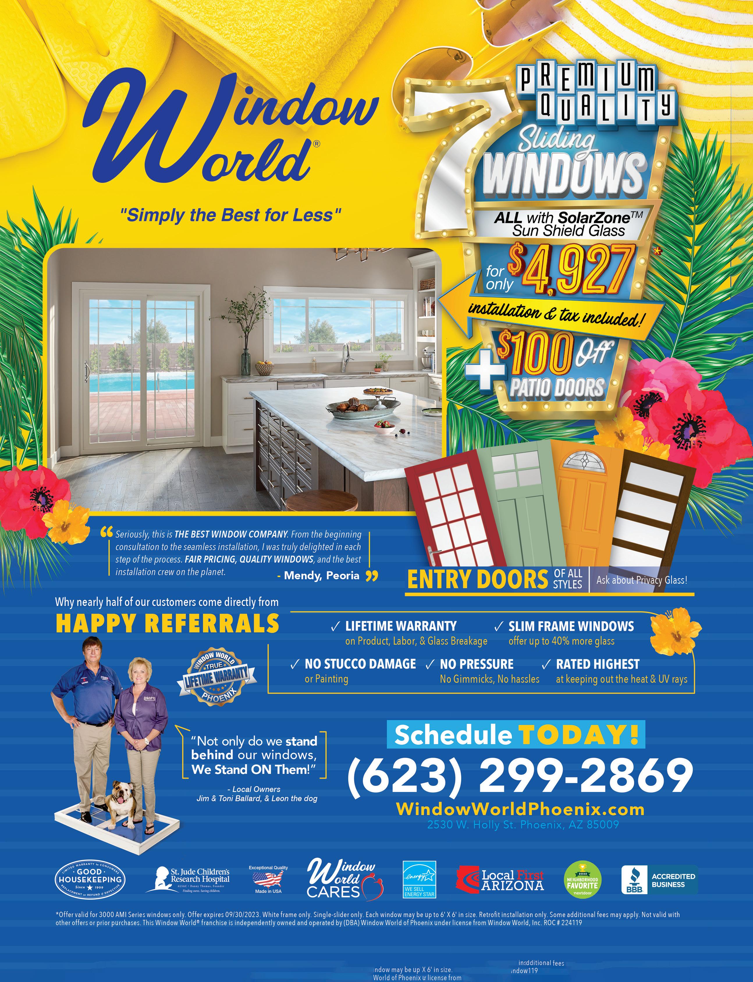 30 THE GRAND SEASON • SEPTEMBER 2023 WWW.THEGRANDSEASON.COM Locally-owned businesses create more jobs locally and often provide better wages and benefits. includes labor & Installation enjoy your yard,without the work! no water. no work. just grass. only $5.75 per sq ft Showroom now open! 16681 N 84th Ave, Peoria, AZ 85382 602-730-7003 ARTIFICIALGRASSMASTERS.COm LOSE WEIGHT WITHOUT FEELING HUNGRY • Feel Fuller Longer • Keep Your Body in "FAT-BURNING" mode • Inhibit Production of Plaque on Blood Vessels • B12 Included to Boost Energy and Weight Loss YOU DESERVE TO FEEL BETTER! Schedule Your Consultation! 623-266-1333 · SunValleyHealthandWellness.com Hormone Pellets release bioidentical estrogen and testosterone into the bloodstream. No synthetic drugs. Treatment from a Board Certified Nurse Practitioner. 12361 W. Bola Dr. #107, Surprise 85378 *Veteran Discount Available* With our Semaglutide Weight Loss Program FEEL LIKE YOURSELF AGAIN! Hormone Replacement Pellets for both Men & Women • More Energy / Stamina • Better Sleep / Improved mood • Feeling Younger • Mental Sharpness • Weight Loss • Relief from Menopause Symptoms Such as Hot Flashes and Headaches Our patients tell us how much their lives improve with: FDA FORAPPROVED LOSSWEIGHT NEED TO LOSE 20+ LBS? Recent labs from PCP required. Not for patients with a history of thyroid cancer, pancreatitis, or type 1 diabetes. PROTECT YOUR GREATEST INVESTMENT • Free Inspection • Financing Available • Family Owned & Five Star Rated • Limited Lifetime Warranty • Discounts For Military & First Responders $500 OFF FULL ROOF REPLACEMENT (602)888-3744 • AZSHINGLEPROS.COM ROC#334918 Call for details. Offer expires 10/15/23. “Enjoy Hot Water Tonight” Senior / Military Discounts ● Licensed - Bonded - Insured ● 100% Financing 602-833-1533 TANKLESS PROS AZ, LLC GAS TANKLESS HEATERS TANK WATER HEATERS ELECTRIC HEAT - PUMP Family Owned & Operated Over 45 Years ● Low Price Guaranteed GET A FREE QUOTE! As Low as $2988 Installed As Low as $1288 Installed Gas Electric As Low as $2788 Installed TankLessProsAZ.com SAVE ENERGY, EARN A FEDERAL TAX CREDIT & NEVER RUN OUT OF HOT WATER! AZ ROC 335298 Mon - Fri 8 am - 5 pm • Sat 9 am - 1 pm 12319 NW Grand Ave. 623-583-1779 • 623-853-6967 • Upholstery • Cornices • Bedspreads • Patio Cushions • Valances • Custom Draperies • Golf Cart Seats • Auto Seats … and much more! INTERIORS DRAPERIES UPHOLSTERY WE REPAIR SLING CHAIRS! MARCELAS $25 OFF Window Cleaning Must present coupon at time of service. Not valid with other offers. Limited service area. Residential & Commercial • Interior & Exterior Glass • Tracks, Sills, and Screens • Solar Panel Cleaning Call for a FREE On-Site Estimate! Bonded and Insured 602-975-8411 www.fishwindowcleaning.com/3243 623-214-7898 www.azdenturecenter.com High Quality Dental Care Meet or beat any other price in our area! A-Z Implant & Dental Center 35% Off New Dentures CALL FOR A FREE CONSULTATION Repair & Reline WHILE YOU WAIT! 19082 N. RH Johnson Blvd., Sun City West General Dentistr y • Implant Expert • 30 Years Experience • Friendly Sta Emergency Hours Available Terry