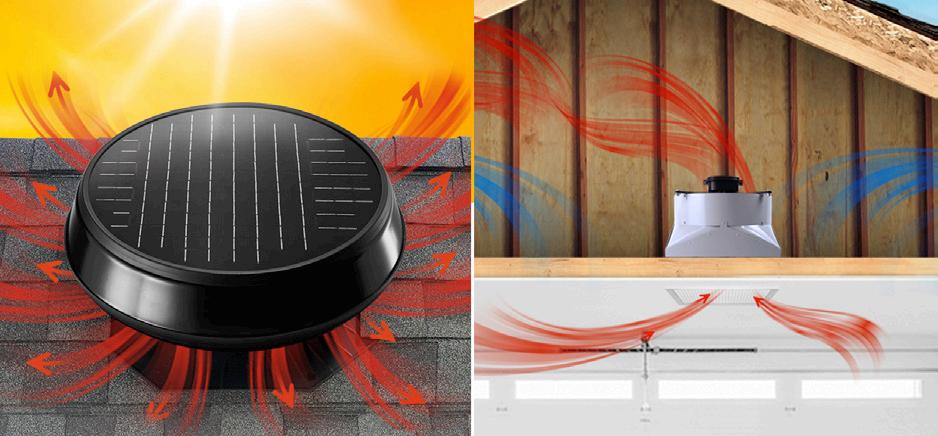 Our solar and electric fans remove hot air from your attic and/or garage, protecting your HVAC system in extreme heat.