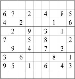 Fill in the grid so that every row, every column, and every 3 x 3 box contains the digits 1 through 9, with no repetition! You solve the puzzle with reasoning and logic - there is no maths involved and no adding up.