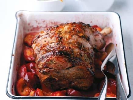 Roast lamb with stem ginger, plums and port