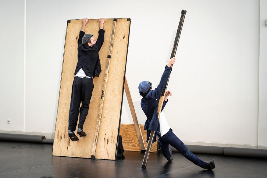 How Things Go by Felix Baumann and Sean Henderson, while certainly humorous, reckons with the doomed cycle of human failure The two men attempt to make something, anything, of the materials at their disposal And time and time again, their structures fail or are dismantled or destroyed and the stage returns to its nearly empty state Their structures served as the vehicles for the performers’ demise more often than not