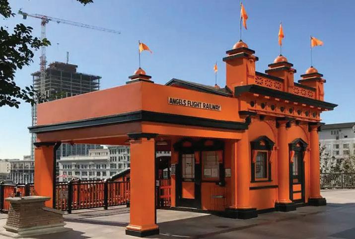 Directly across from GCM is one of Downtown LA’s oldest landmarks and tourist attractions. Built in 1901, Angels Flight Railway has given more than 100 million passengers lovely hints of the older days of Los Angeles. With two brightly colored orange vintage trolleys offering a