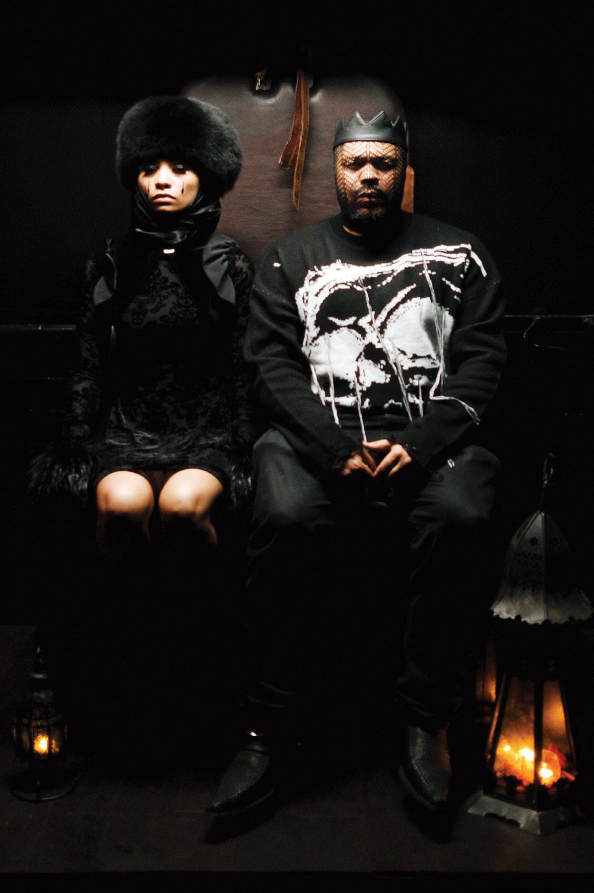 surroundings, the room is a mini torture chamber of dining tables, goth decor, melted candle sticks, photography of graphic nature and interactive S&M displays.