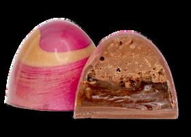 Crunchyalmond pralineandsilky coffeecaramel,coated increamymilk chocolate