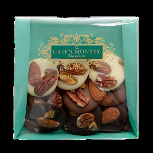 Chocolate Vegan Milk Chocolate Almonds Mocha Cappuccino Caramels Milk Chocolate Almonds Passion Fruit Crunch Red Velvet Cherries Passion Fruit & Mango Pate De Fruit White Chocolate Almonds Sugar Free Dark Chocolate AlmondsTreat yourself to our chocolate mendiants in creamy white, velvet smooth milk, and intense dark chocolate, each topped with toasted almonds, pecans, and pistachios.