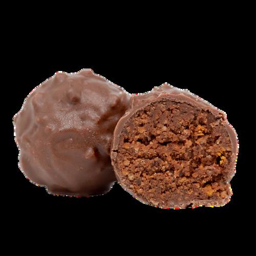 A layer of tart raspberry jam, complimented by a dark chocolate raspberry ganache. Encased in a rich dark chocolate shell