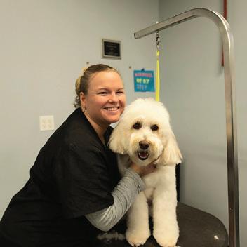As a groomer who has been in the field for three years now, Kelly shares, “I really like getting to know the dogs and seeing them time and time again. That’s my favorite part and makes my day.” At home, Kelly is thriving going to the gym daily, working on home projects, and living her best life with her two cats, Onion and Angela. She says, “Being a homeowner is surreal!”