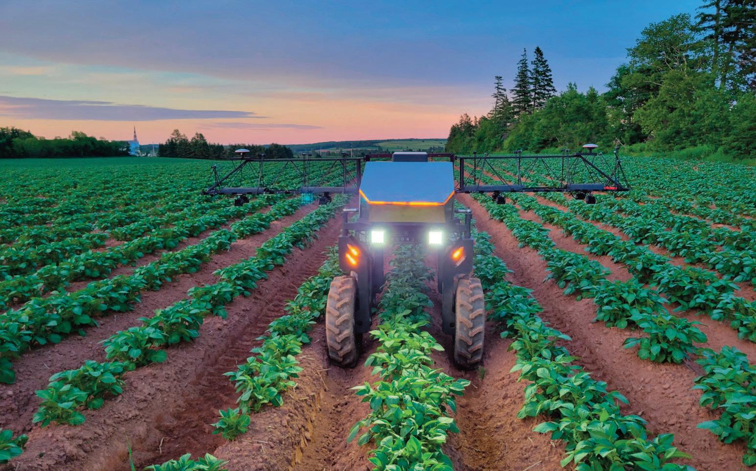 Those headlights might look like two rising moons. But no, that’s a robot that’s moving from the twilight zone into reality. In this photo, a robot operating with artificial intelligence is in the second year of trials scouting PVY virus in Prince Edward Island potato fields. Photo by Charanpreet Singh.