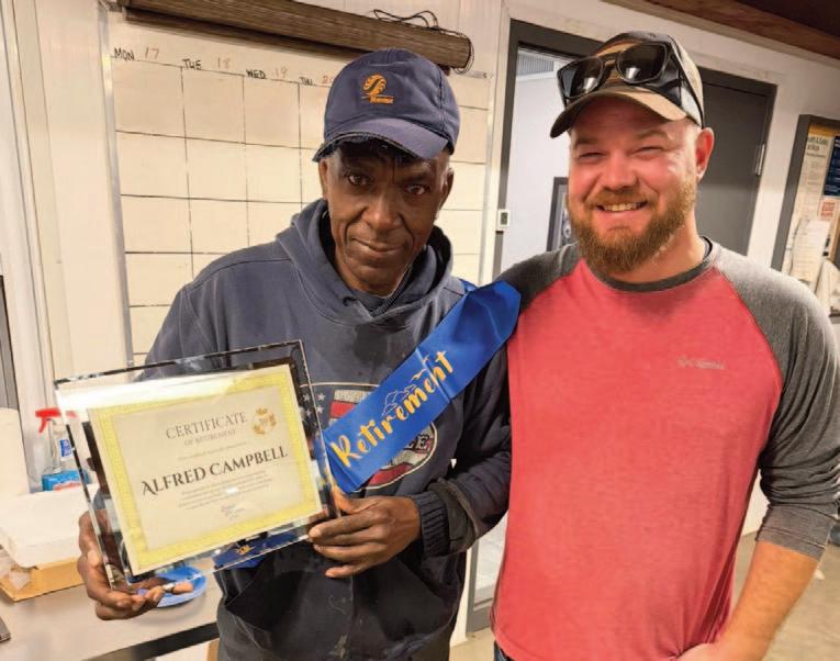 Jamaican temporary foreign worker Alfred Campbell retired from Streef Produce Ltd after 30 years at the Princeton, Ontario farm. He was congratulated by Nathan Streef.