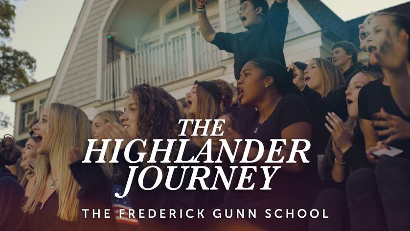 Whether you are just beginning to explore boarding school, or you are nearing decision time for the coming years, I hope that this book helps you see why our students are such proud Highlanders, both in their time on campus and as alumni. The Frederick Gunn School is built on the belief that strength of character is the true goal of education, and that is learned as much through athletics and residential life as in our classrooms. We all — students and faculty — are learning every day, and we push one another to be at our best. The result is quite simple and unique for a high school: Highlanders look out for one another. Highlanders are always learning, and that is a virtue that resonates deeply with me as an educator. Our program is built so that every student learns about themselves and how they learn. Being a great learner is the very best resource we can give to our students as they face the changing landscape of information and work in the coming decades, and it is a value that has shaped our curriculum since Frederick and Abigail first started our school in 1850. This is also why we place so much value in our Advising Program and carve out time for these trusted adult relationships in our daily schedule. Each Highlander is asked to reflect on what kind of impact they want to have in the world when they leave this beautiful campus, not just what profession to pursue, but what kind of citizen they want to be and what legacies of good they will leave along their way. This is embodied in our Citizenship and Just Democracy curriculum, but also permeates the ethos of their coaches, teachers, and house parents. As our students figure out how to be good citizens of this school, they learn what responsibility and impact will feel like throughout their lives.