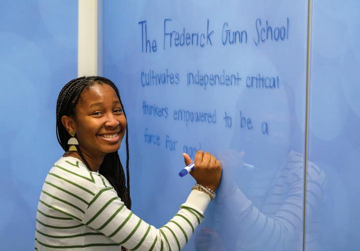 IN 2024, THE BOARD OF TRUSTEES approved a new mission statement for The Frederick Gunn School (above). Our mission serves as a driving force for our programs and is a distillation of our values. Like the renaming of our school, it emphasizes our recommitment to our founders, Frederick and Abigail Gunn, and reinforces how we are carrying their legacy forward. That’s a lot to pack into two sentences. Yet these words reflect the ways in which our approach to educating young people remains both timeless and current. This is how we are living our mission today.