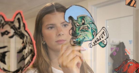 College Counselors develop individual college strategies for each Highlander to help them stand out in the college application process. Each spring, seniors are invited to decorate the windows of the College Counseling Office with the logo of the school they plan to attend in the fall, which for Poppy, is Tulane University.