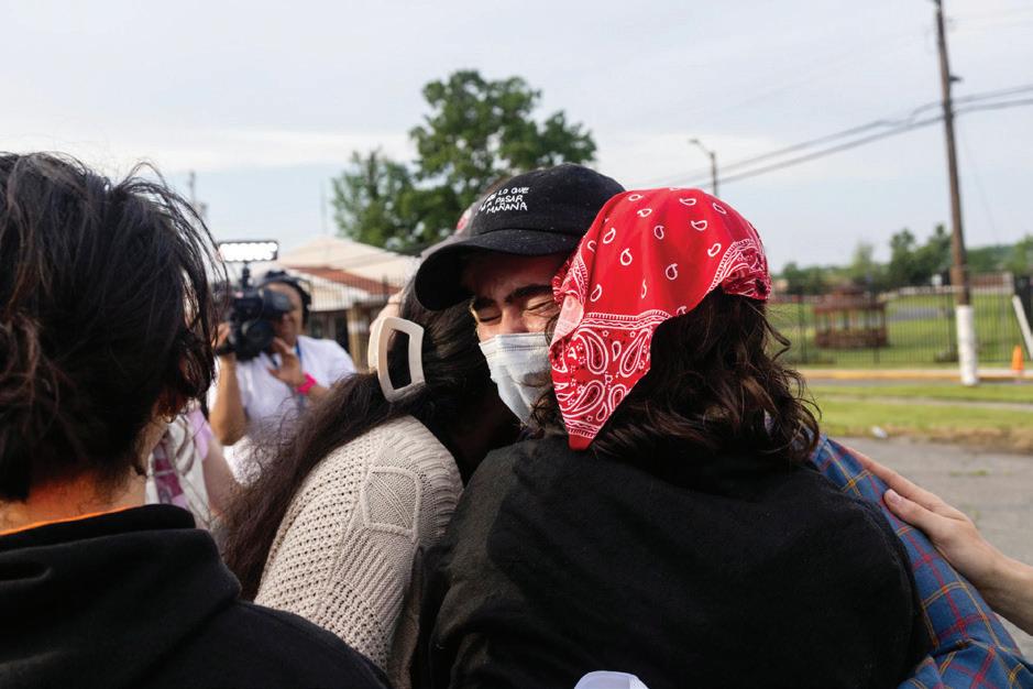 Day 12 LEXI CRITCHETT Metropolitan Police Department officers deploy pepper spray on a crowd of demonstrators at the barricades police erected during their sweep of the encampment. Day 13 SAGE RUSSELL Organizers embrace a protester released from custody after officers arrested more than 30 protesters. Day 14 SAGE RUSSELL A demonstrator stands before a line of local police after protesters set up an impromptu encampment on F Street. Day 15 DANIEL HEUER Organizers give a press conference about their first meeting with officials to discuss their demands in front of U-Yard. Day 16 MAX COLLINS