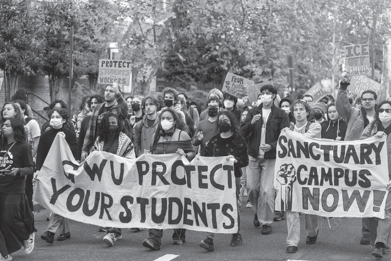 The GWU Left Coalition has outlined specific policy recommendations for GW to implement as a step toward a genuinely democratic institution: the Sanctuary Campus Demands. In the absence of leadership, the GWU Left Coalition calls on all community members committed to keeping GW safe and free to join our campaign. For updates, follow the GW Socialist Action Initiative, GWU Students for Justice in Palestine and GWU AntiZionist Jewish Student Front on Instagram. Read the demands, sign the student letter resisting fascism, talk about the federal encroachment in class and join organizations fighting for a democratic university. This is our campus, this is our community, this is our university. We must make it so.
