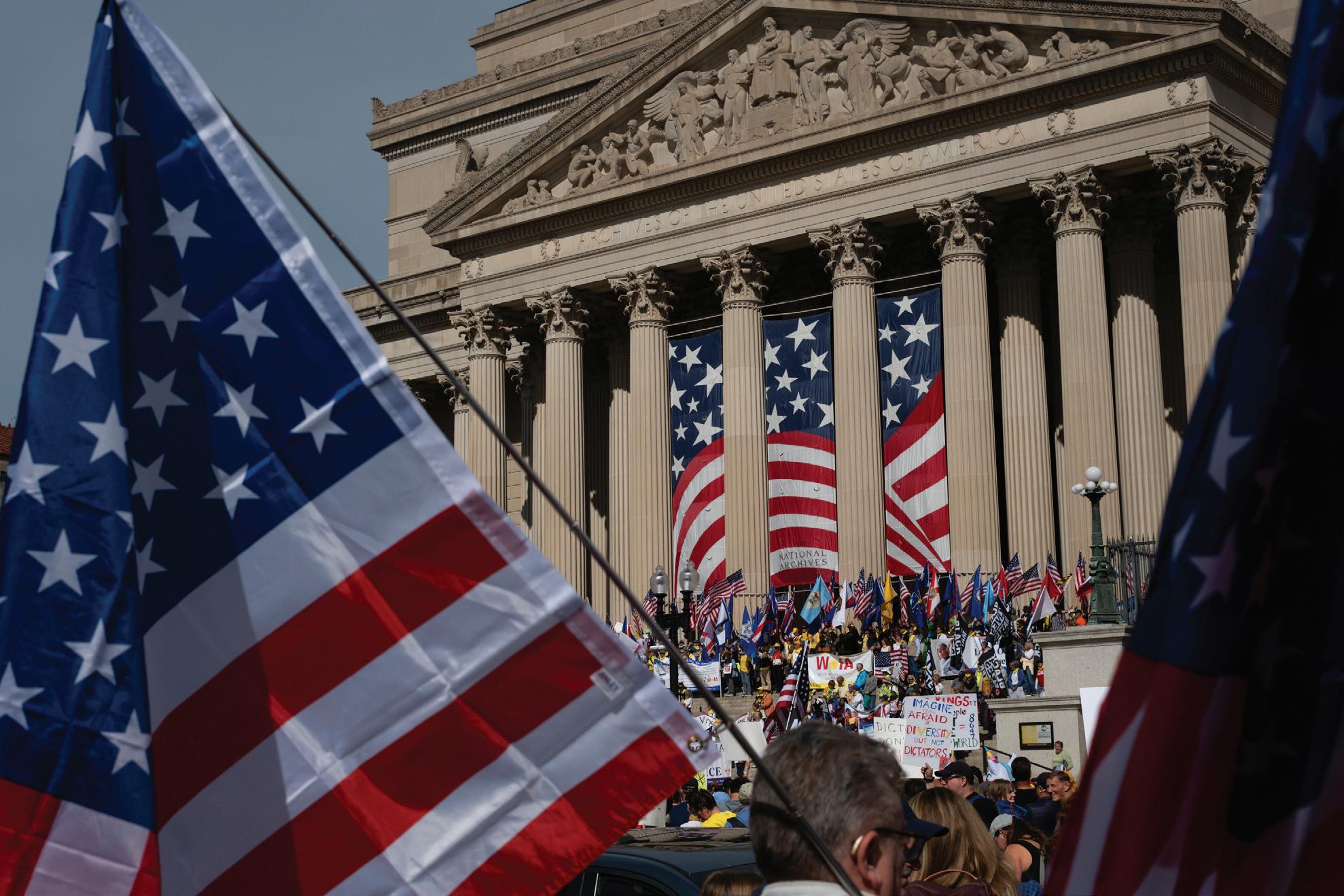 helped counter Republican claims that Saturday’s protest was anti-American. The rally speeches kicked off at noon Saturday at Pennsylvania Avenue and Third Street NW. Many protesters marched from Arlington, Virginia, crossing the Arlington Memorial Bridge before making their way to the site of the rally. National Guard troops and Metropolitan Police Department officers were spotted in the protest areas, but of-