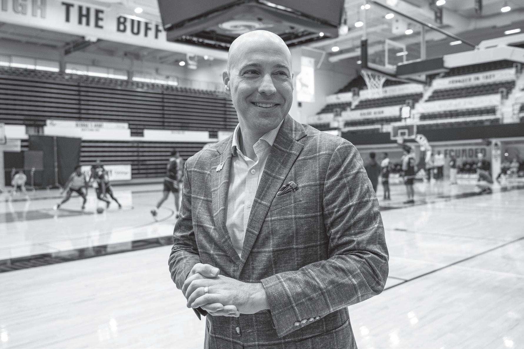 Director of Athletics Michael Lipitz poses for a portrait in the Smith Center during a men’s basketball team practice.