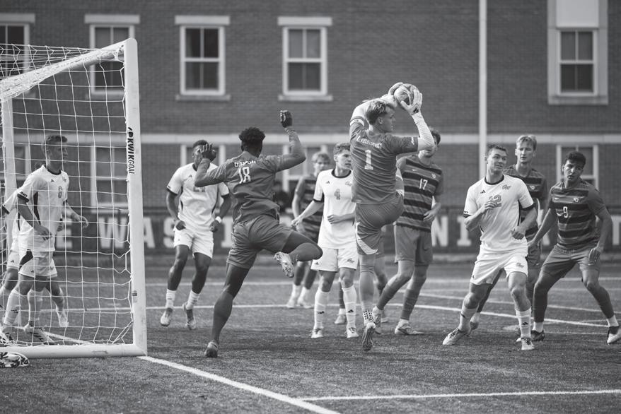 RACHEL KURLANDSKY | STAFF PHOTOGRAPHER Junior goalkeeper Tom Macauley catches the ball.