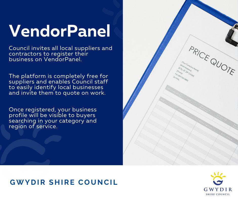 Gwydir Shire Council currently uses VendorPanel to source quotes and tenders from suppliers for the purchase of goods and services.