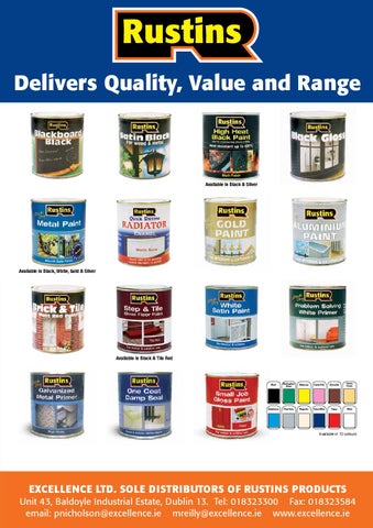 EXCELLENCE LTD. SOLE DISTRIBUTORS OF RUSTINS PRODUCTS Unit 43, Baldoyle Industrial Estate, Dublin 13. Tel: 018323300 Fax: 018323584 email: pnicholson@excellence.ie mreilly@excellence.ie www.excellence.ie