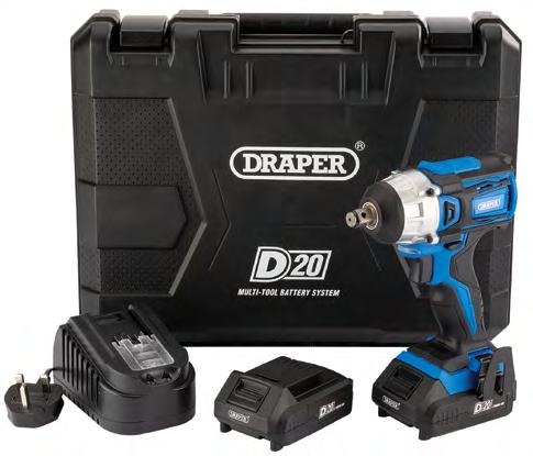 Introducing the new D20 series of cordless power tools from Draper Tools. The impressive range features a convenient multi-tool battery system - where one interchangeable battery system powers every tool in the range. Eliminating the hazards of tangled cables and the need for accessible power sockets, the D20 range is well-suited to trade users, featuring high-quality cordless power tools that are ideal for a variety of tasks on the job, in the workshop, in the garden or home. Whether your customers need an impact driver or wrench, a drill for masonry or wood-working, a saw for timber or branches, even a pressure washer or nailer/stapler, the range boasts an impressive performance and some very handy features. Most of the D20 range features a brushless motor for improved performance and durability and there’s a range of battery sizes and charger options available too.