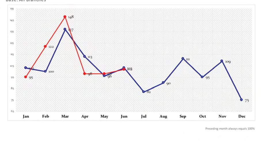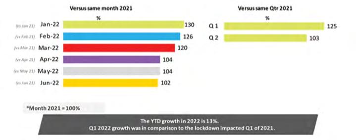 The YTD June 2022 year on year growth of 13% is in comparison to the lockdown impacted YTD June of 2021.