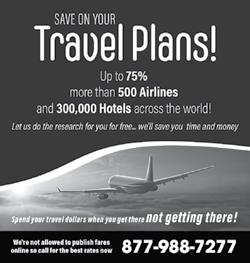 Up to 75% More than 500 AIRLINES and 300,000 HOTELS across the world. Let us do the research for you for FREE! Call: 877 988 7277
