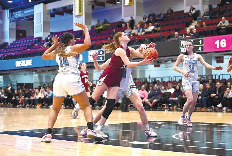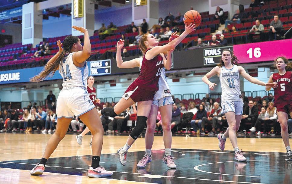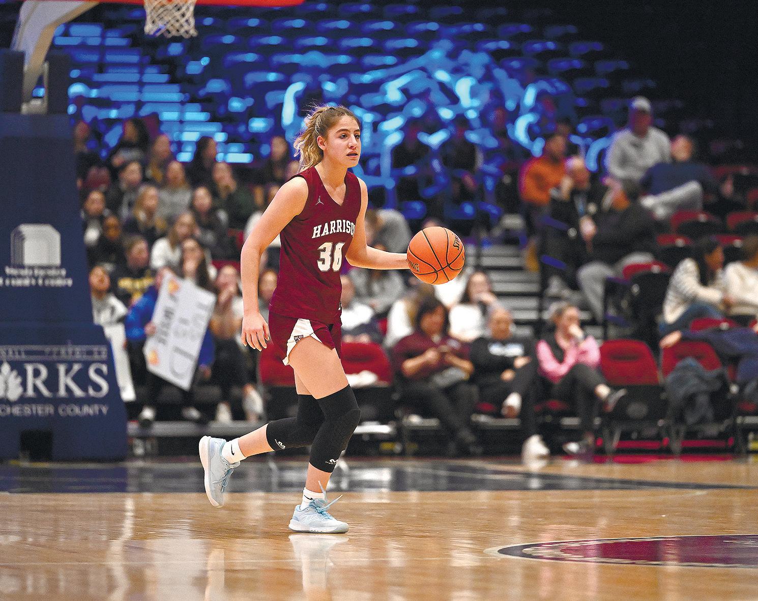 Playing in the Class AA semifinals against Ursuline, a short-handed Huskies’ squad fell 55-37 to the No. 2 Koalas at the Westchester County Center, putting a bittersweet stamp on the careers of three seniors—Olivia Fernandez, Stella Perini and Olivia Greco—who have helped the program set a formidable standard for future generations of Huskies. Without junior point guard and 1,000 point scorer Mia Strazza in the lineup—Strazza has been sidelined with an injury this postseason—Harrison knew it had an uphill battle against an Ursuline