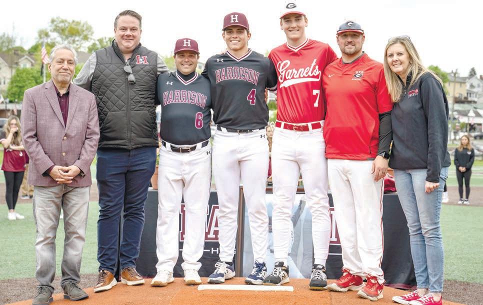 Rye and Harrison met on May 4 to pay tribute to late Harrison pitcher Andrew Gurgitano, who passed away in 2014. Prior to the game, Harrison’s Marco Citro and Rye’s Shep Griffiths received awards for embodying Gurgitano’s commitment to family, friends and teammates. For story, see page 16.