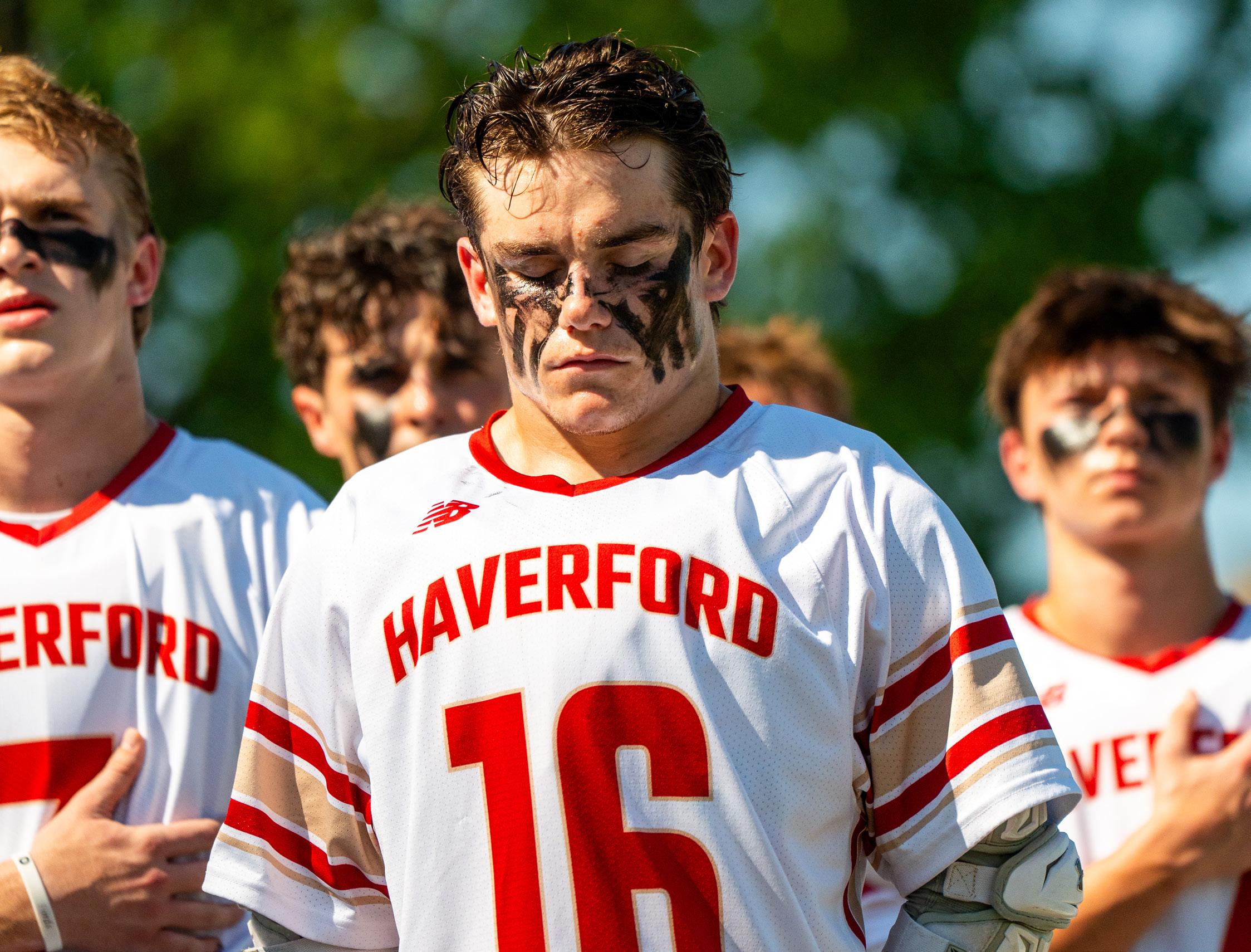 Andrew Lyon ’24 reflects during the National Anthem prior to the May 2 Malvern game