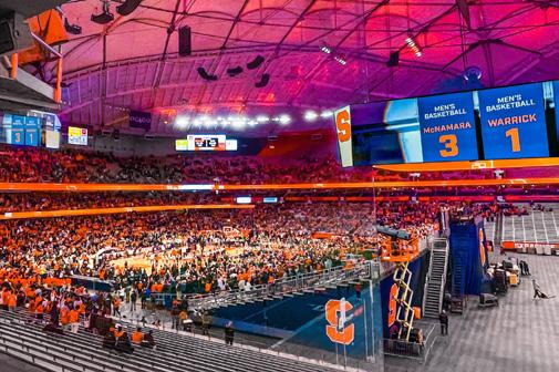 Construction began on the first phase of the multi-million, multi-year project in 2022 with the new front entrance. This project includes an addition and renovation to existing spaces within the Roy D. Simmons. Sr. Coaches Center at Syracuse University. Outside, heated paver sidewalks and a new roadway configuration were added along with all new site lighting, water, sewer, and storm infrastructure. Inside, radiant heat flooring were installed in the main lobby with high-level finishes throughout, paneled walls, and decorative ceilings.