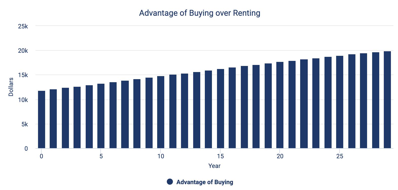 Over the term of your 30-year evaluation period, you will save $481,475 by buying instead of renting