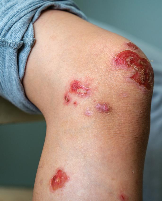 problem with the liver or with bile flow. In newborns, jaundice is relatively common and usually improves with phototherapy. Very pale skin or mucous membranes could signal anaemia. Be careful not to assume your customer has a specific underlying condition, because it may just be their natural colouring. However, you could ask if they have any underlying health issues that may impact on what products they buy. Be observant for any skin rashes or significant blemishes. Seniors and people with fair skin are prone to skin cancers, such as basal or squamous cell carcinomas, and melanoma. Most skin cancers can be successfully treated if found early, and with regular customers you may like to point out any blemishes of concern and ask if they have seen a doctor about them. Many creams and topical products sold over the counter may irritate some people’s skin, particularly those with eczema, allergies, or psoriasis so refer people with sensitive skin to a pharmacist.